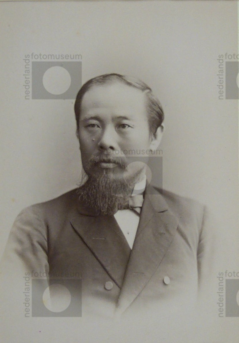 Studioportret van vooraanstaand gemengd Japans (man)...