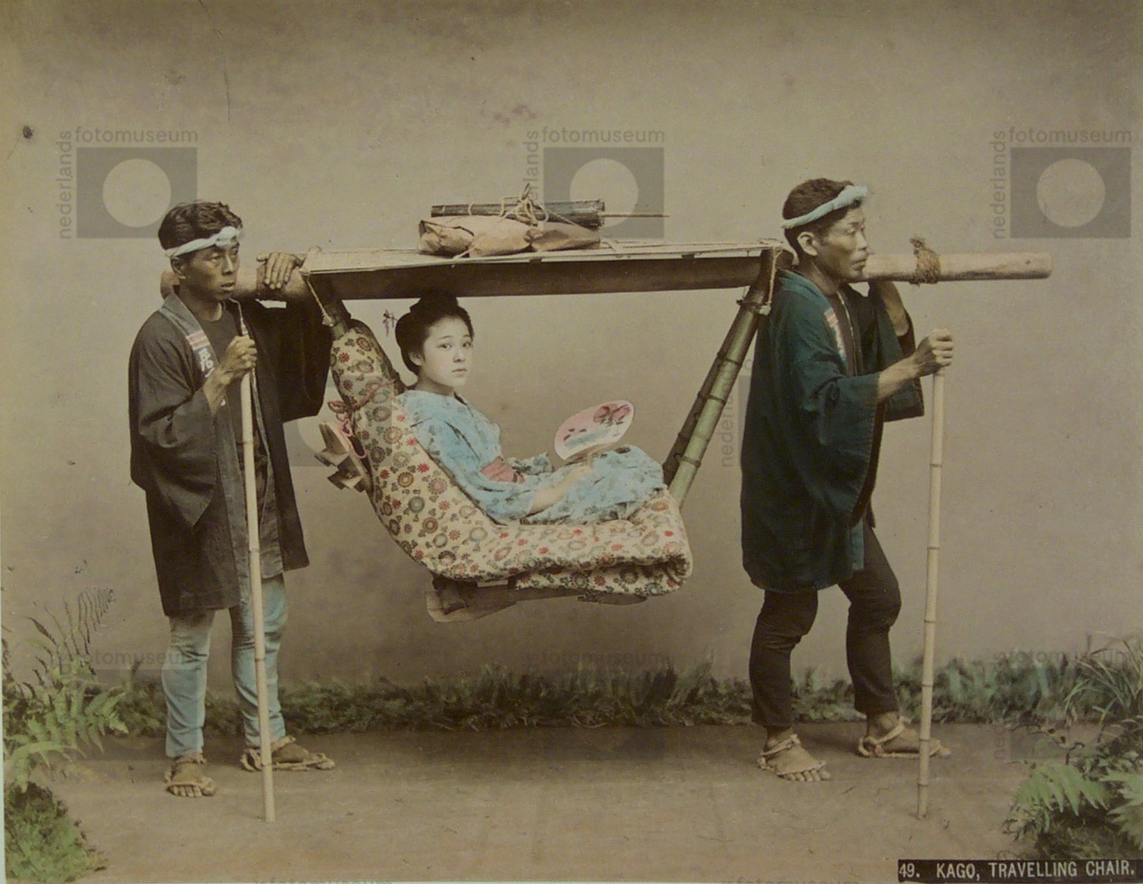 Een draagstoel (kago), Japan (1881-1914)