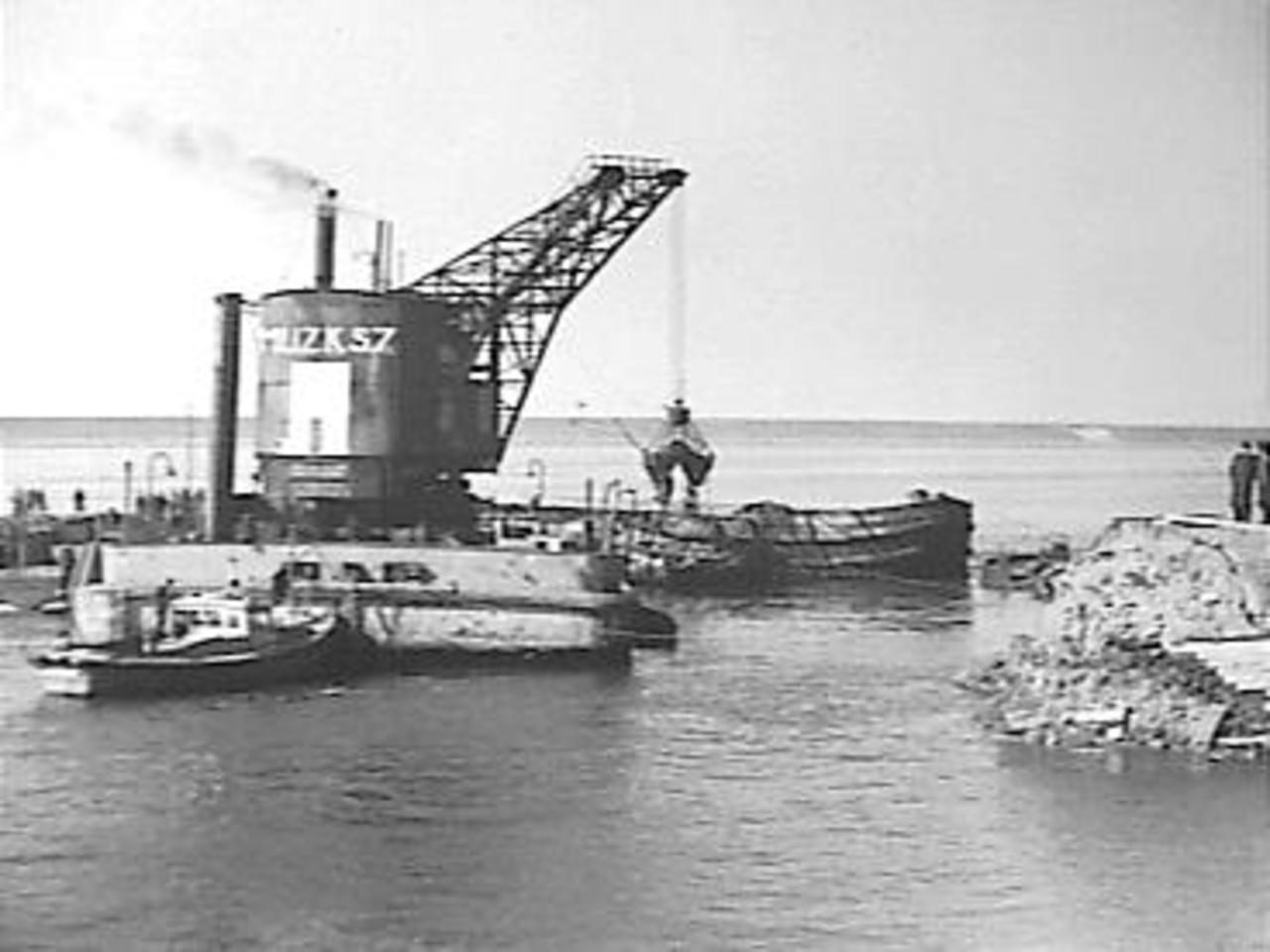 Enkhuizen. Dijkaanleg. Het vlechten van de zinkstukken.