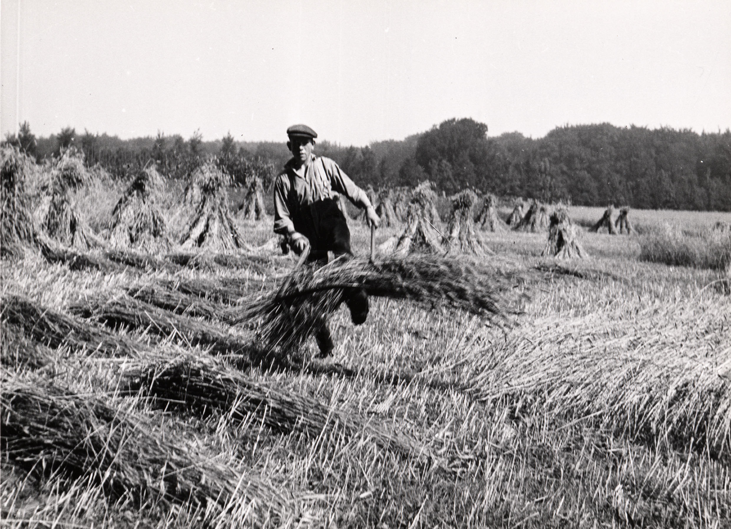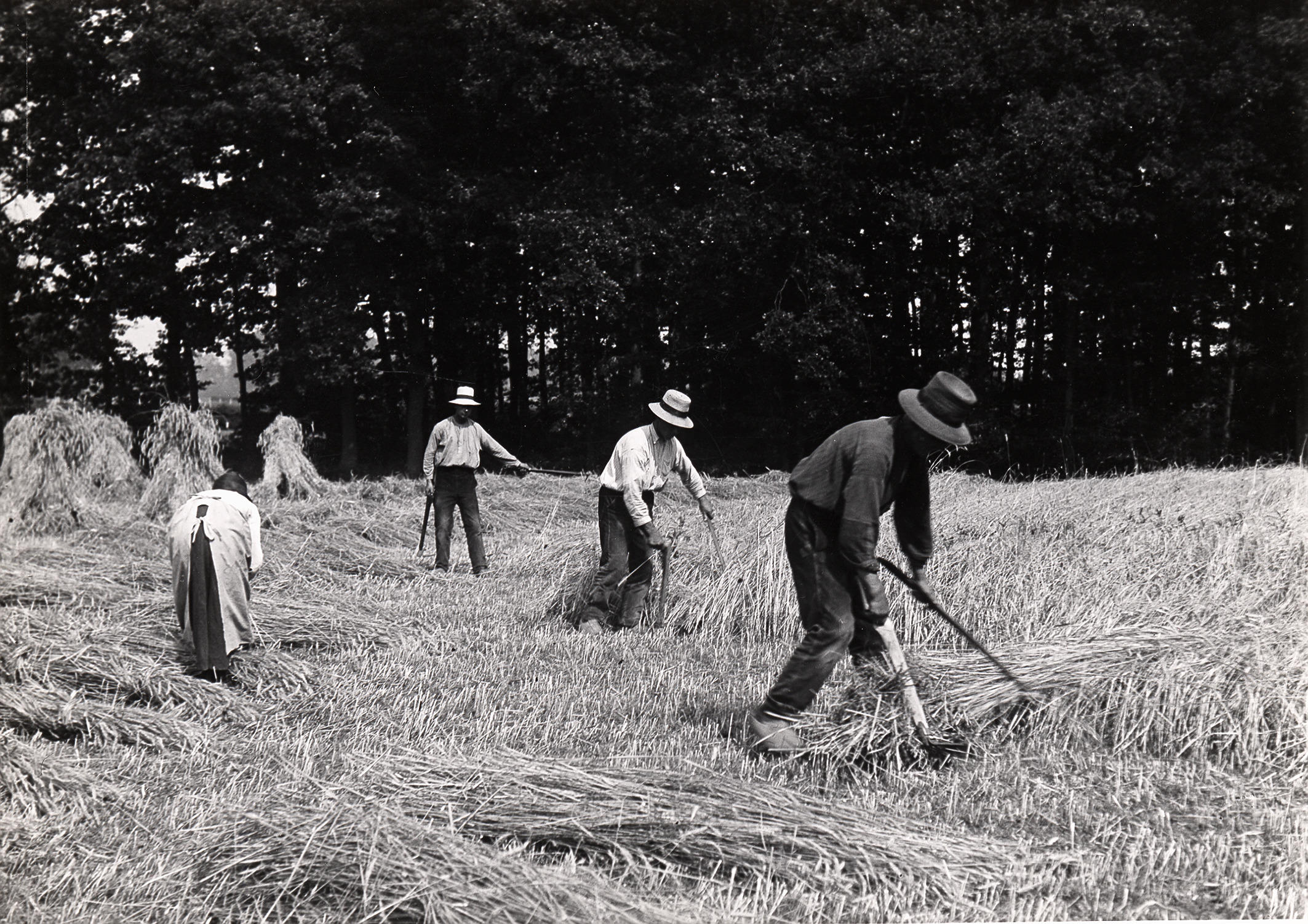 Oogsten van graan, Utrecht, 1914–1934 (zwart-wit foto)