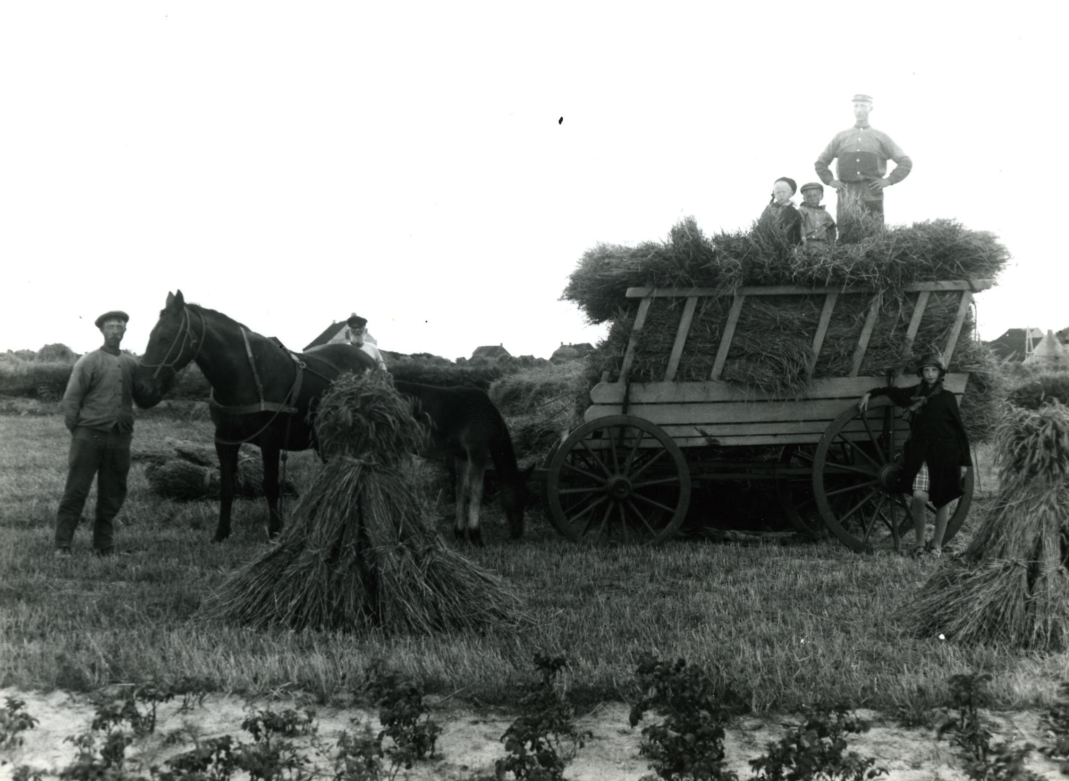Laden van rogge, Ameland, 1914–1934 (zwart-wit foto)
