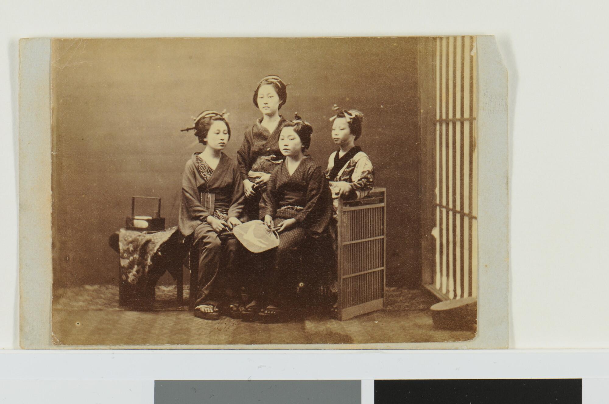 Groepsportret bestaande uit twee vrouwen en een jong...