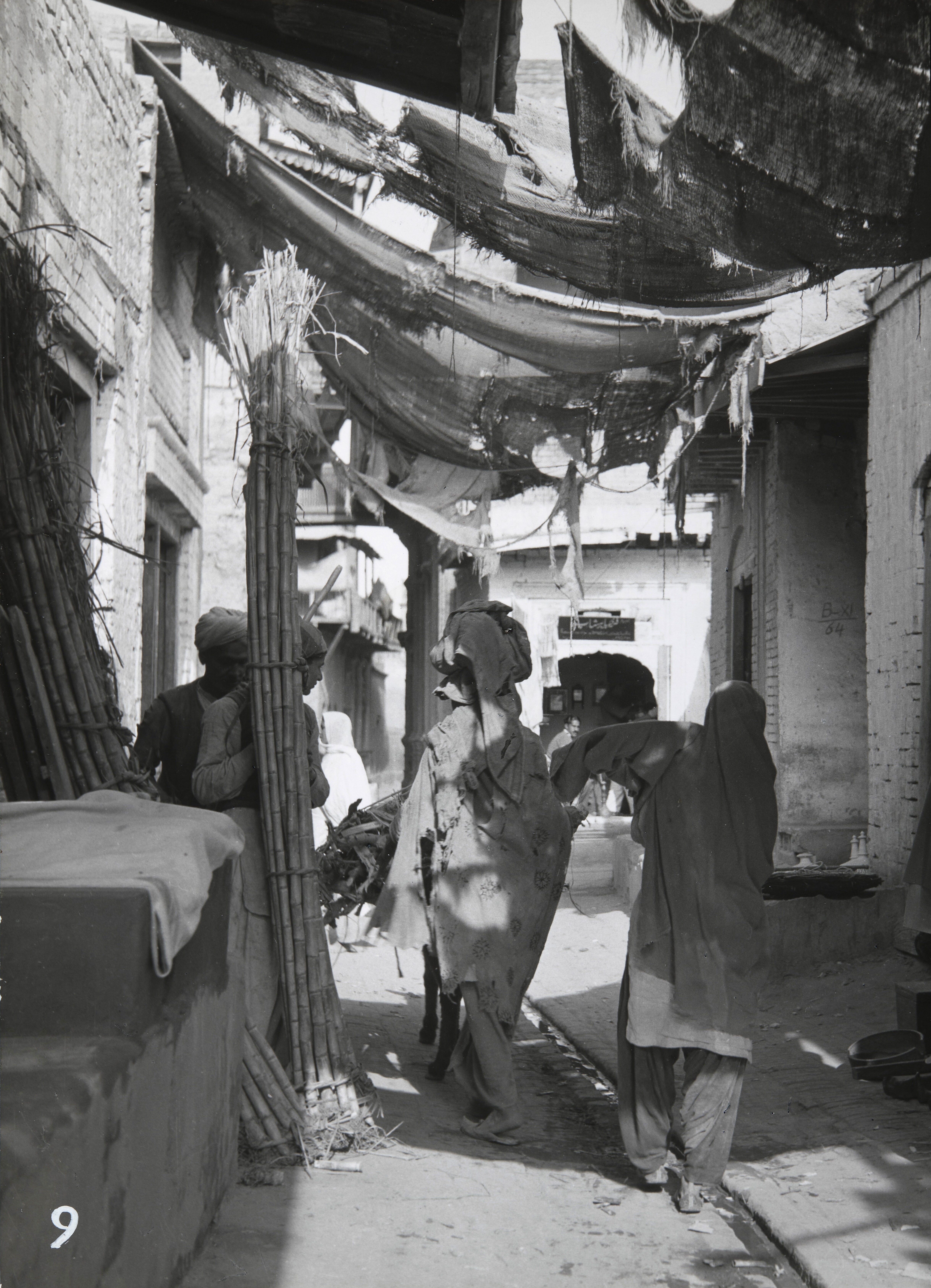 Smalle straat overdekt met lappen om de felle zon te...