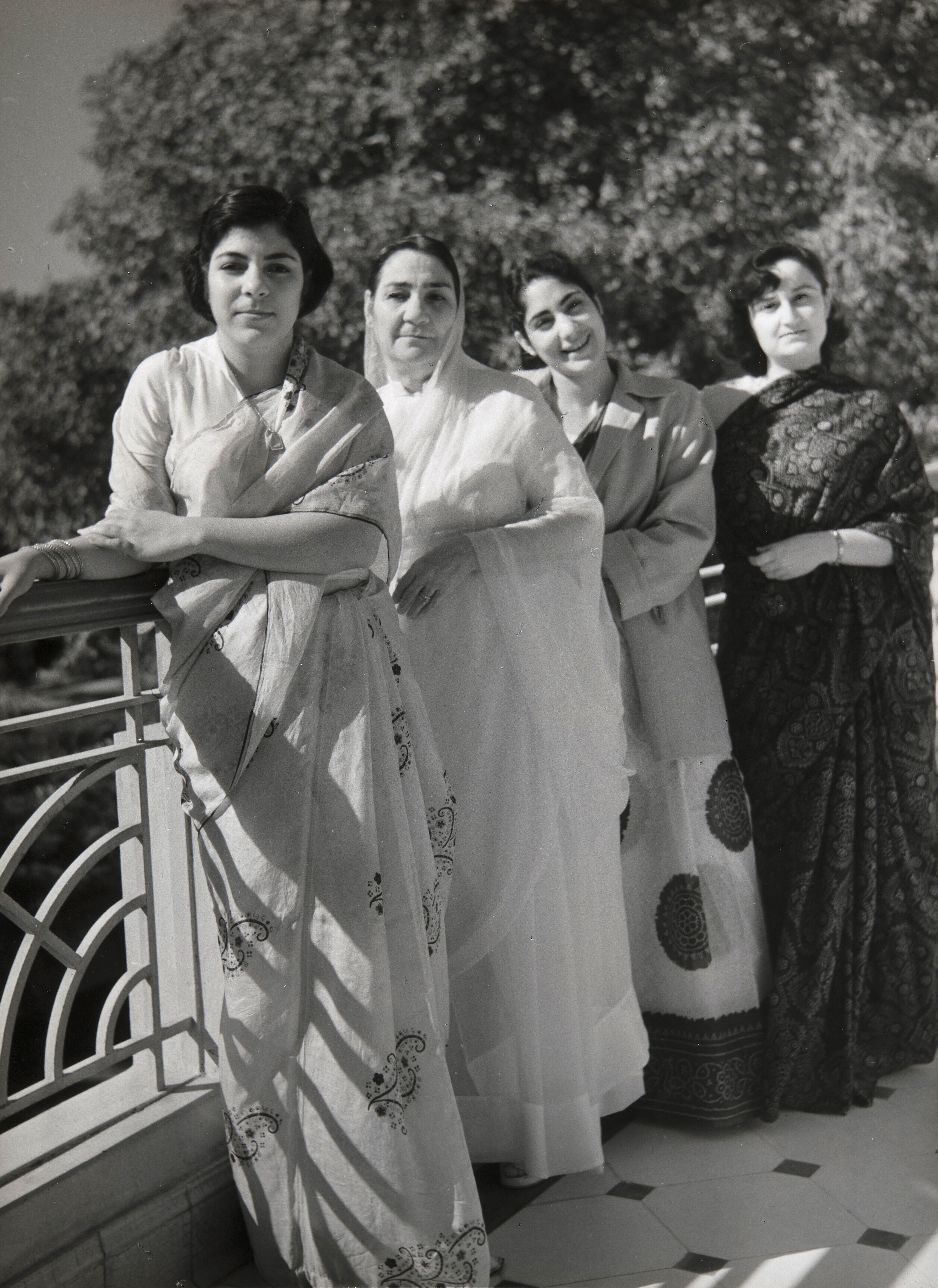 Groepsfoto van vijf vrouwen voor de 'Fatima Jinnah m...