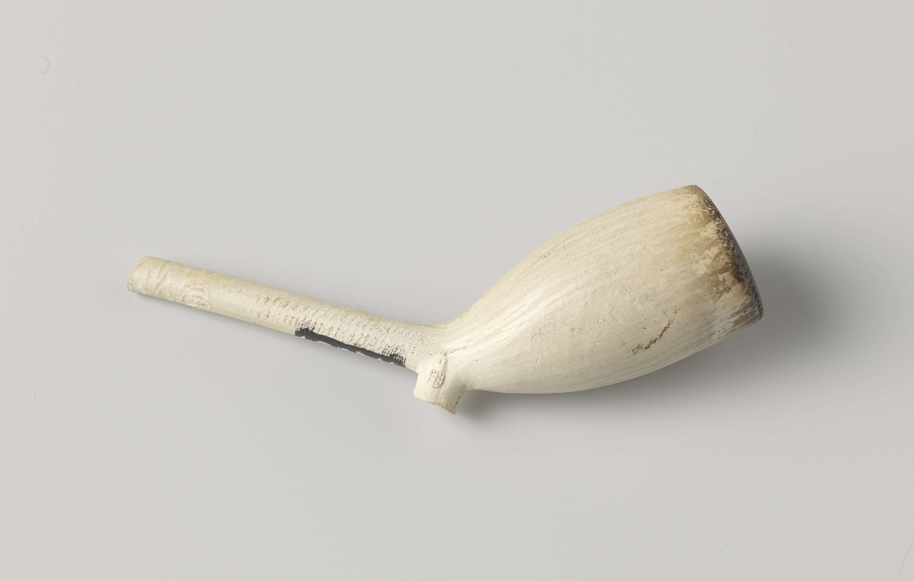 Fragmenten pijpensteel en pijpenkop uit het wrak van...