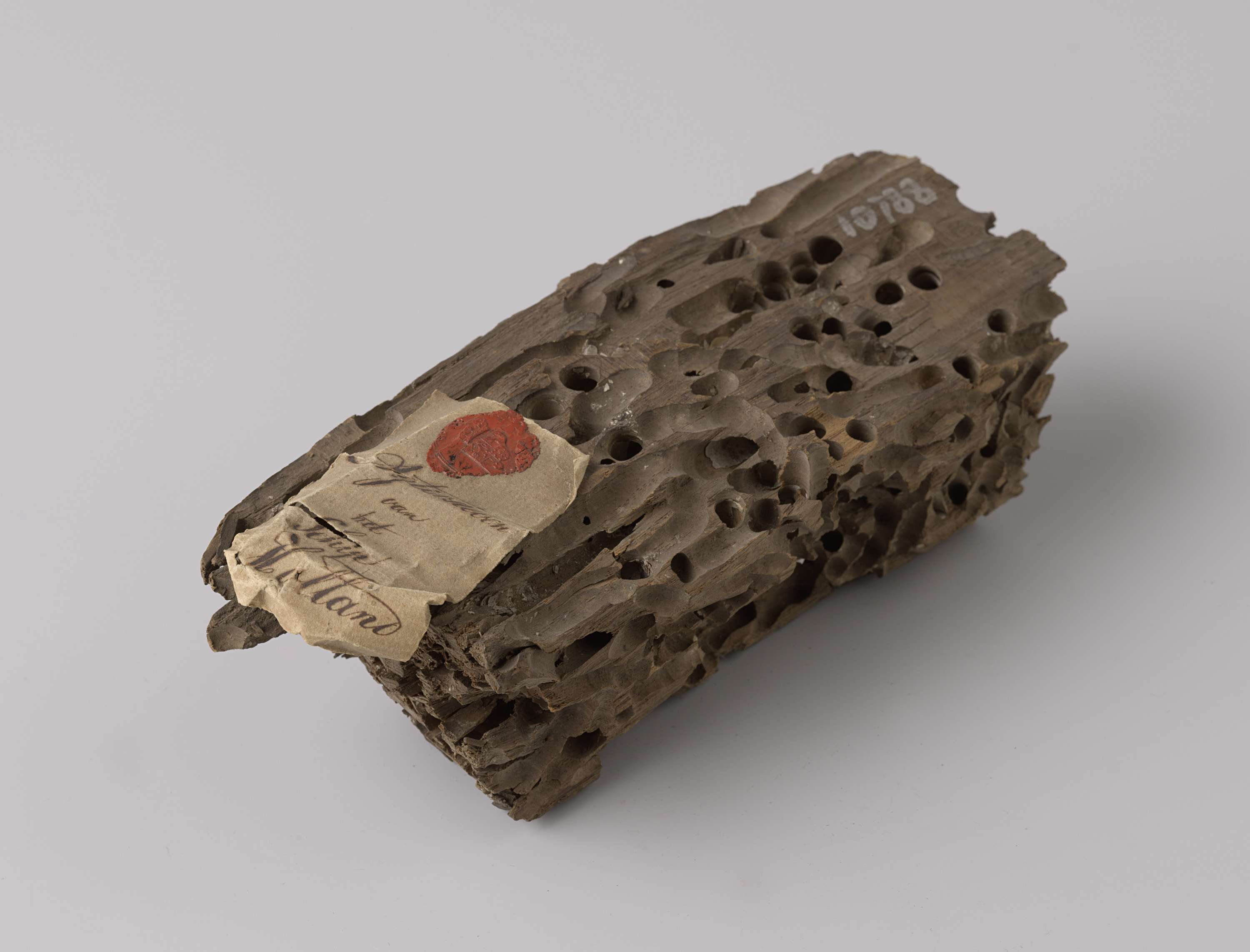 Fragment hout uit het wrak van de Oostindiëvaarder H...
