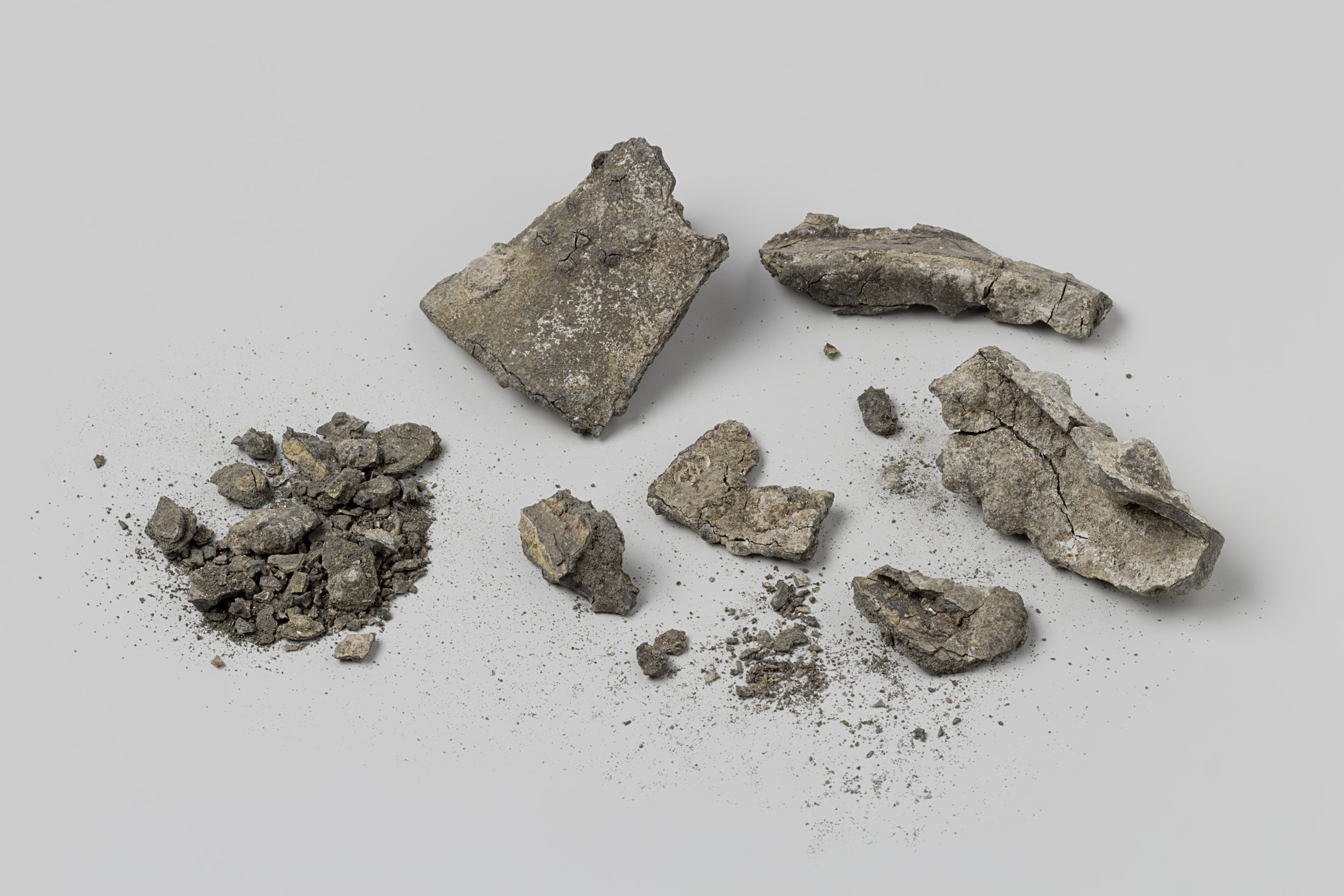 Fragmenten van tin of lood uit het wrak van de Oosti...