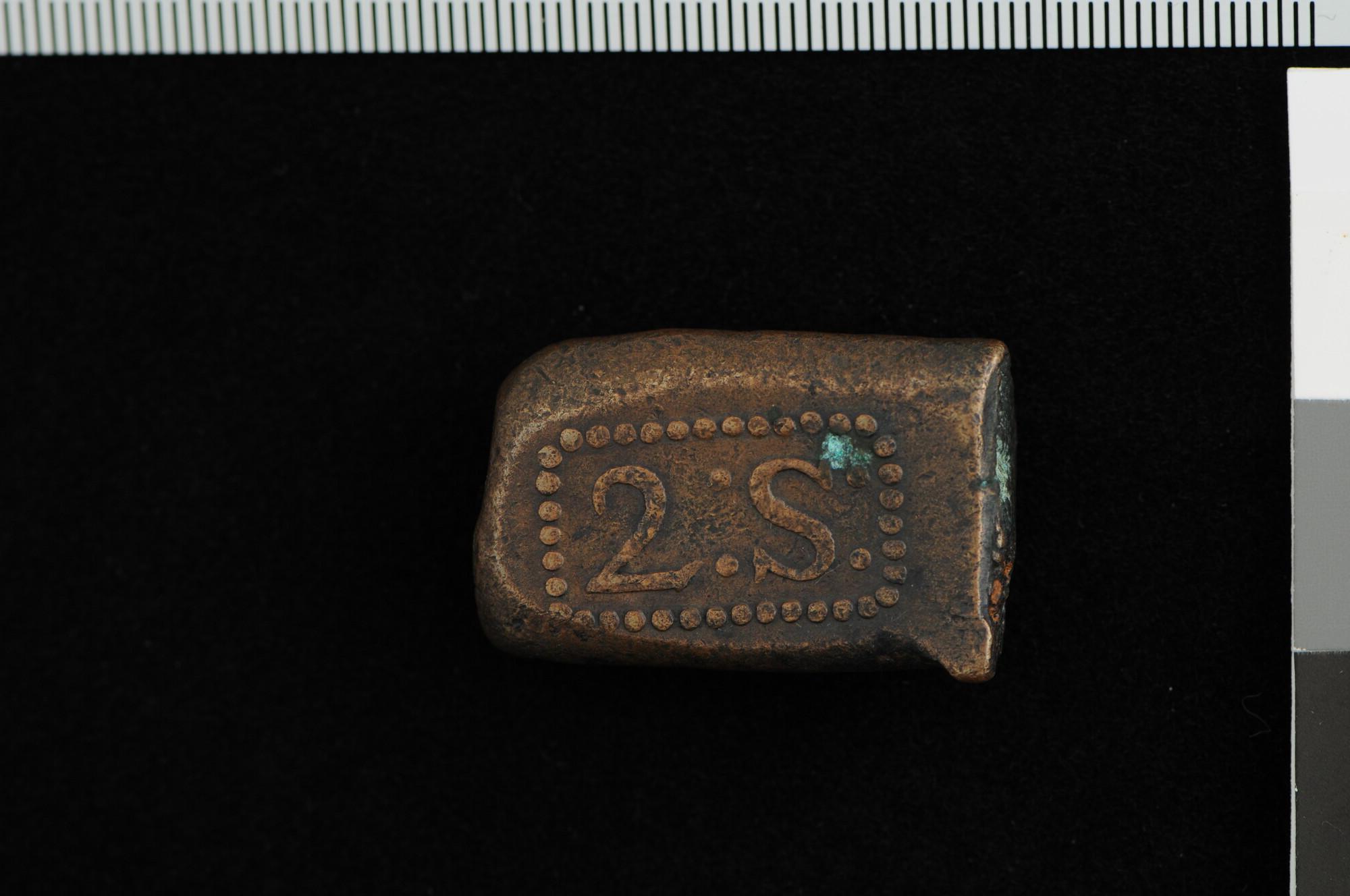 Tweestuiver stuk, geslagen te Batavia, zogenaamde bo...