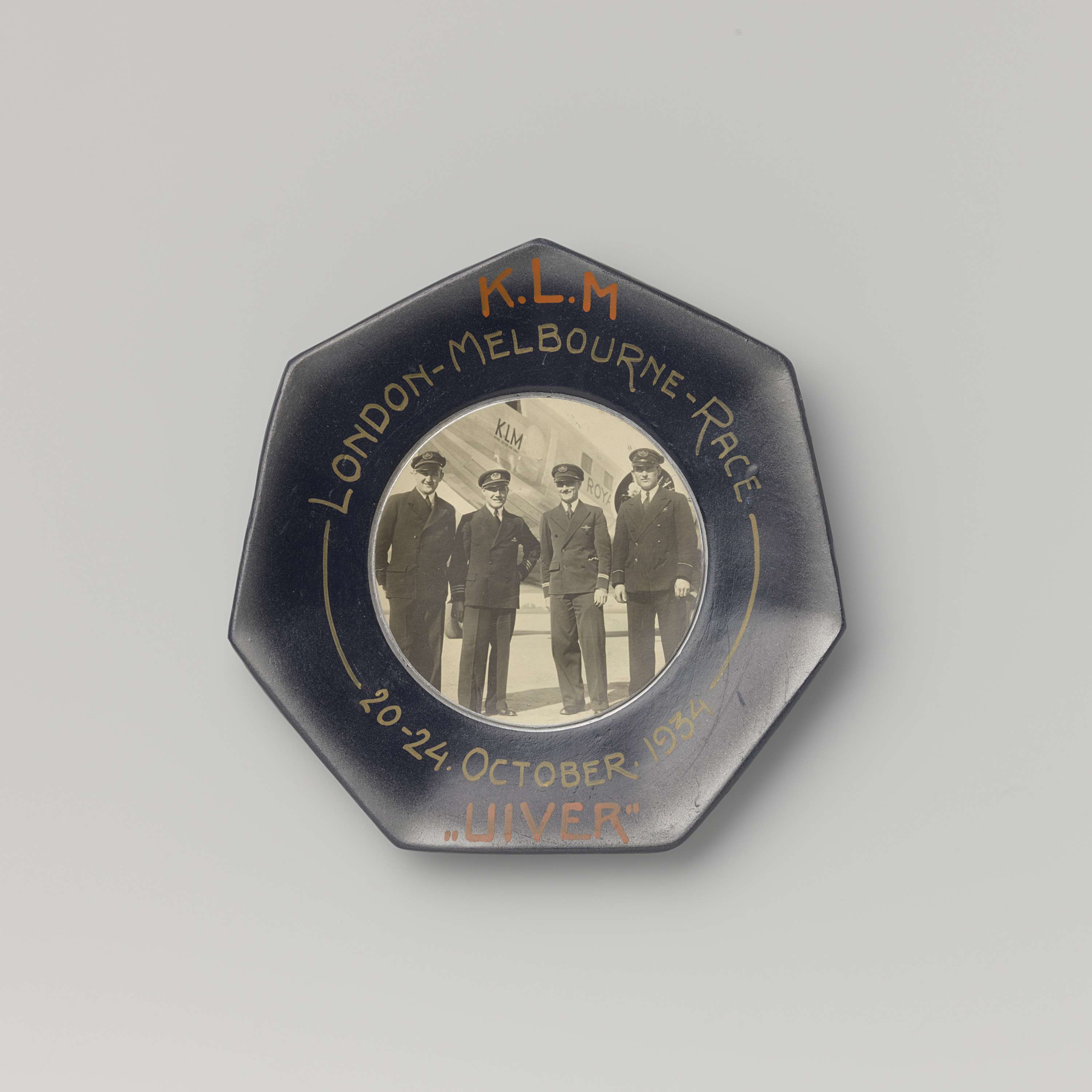 Wandbord KLM met de bemanning van de Uiver (race Lon...