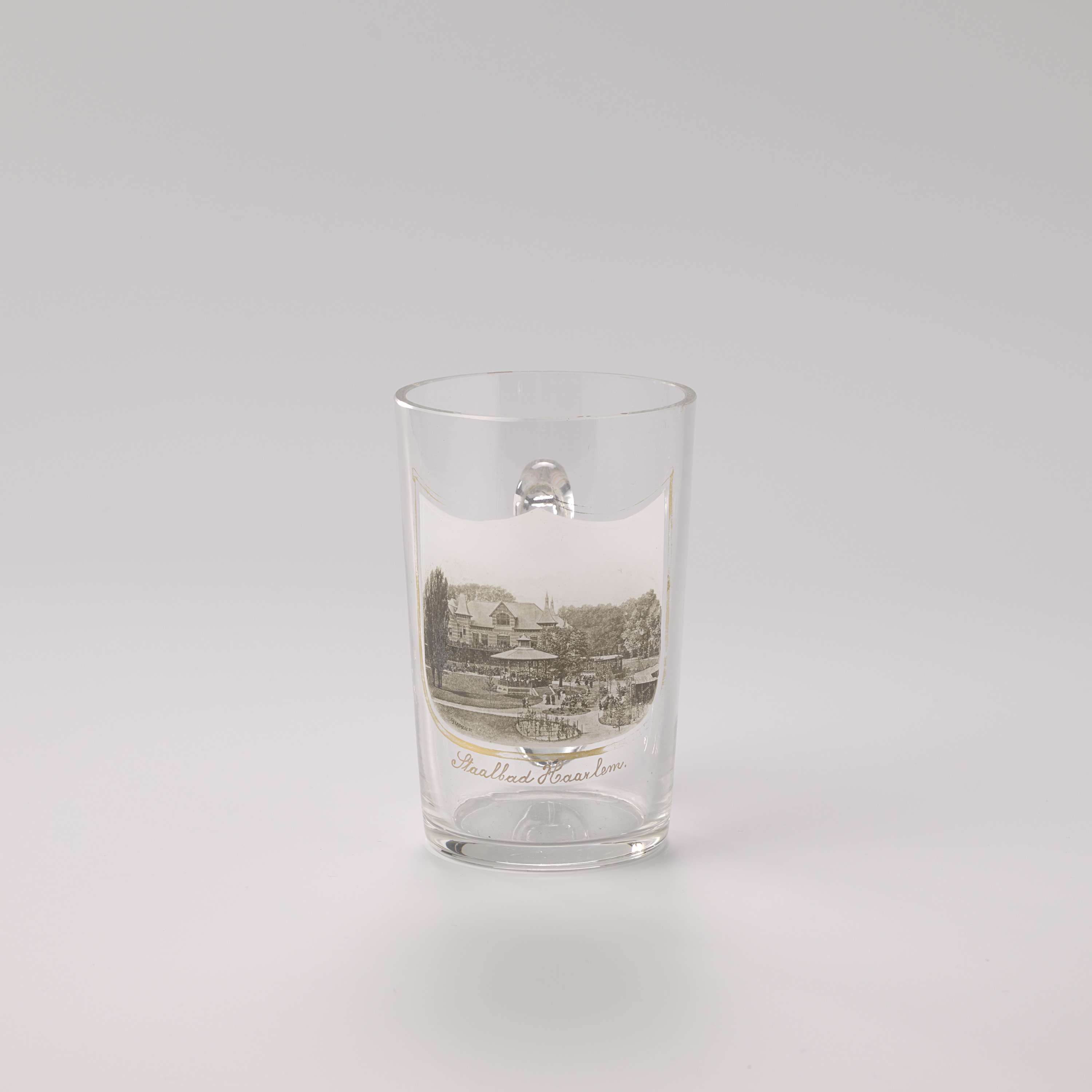 Glas met foto van het Staalbad in Haarlem