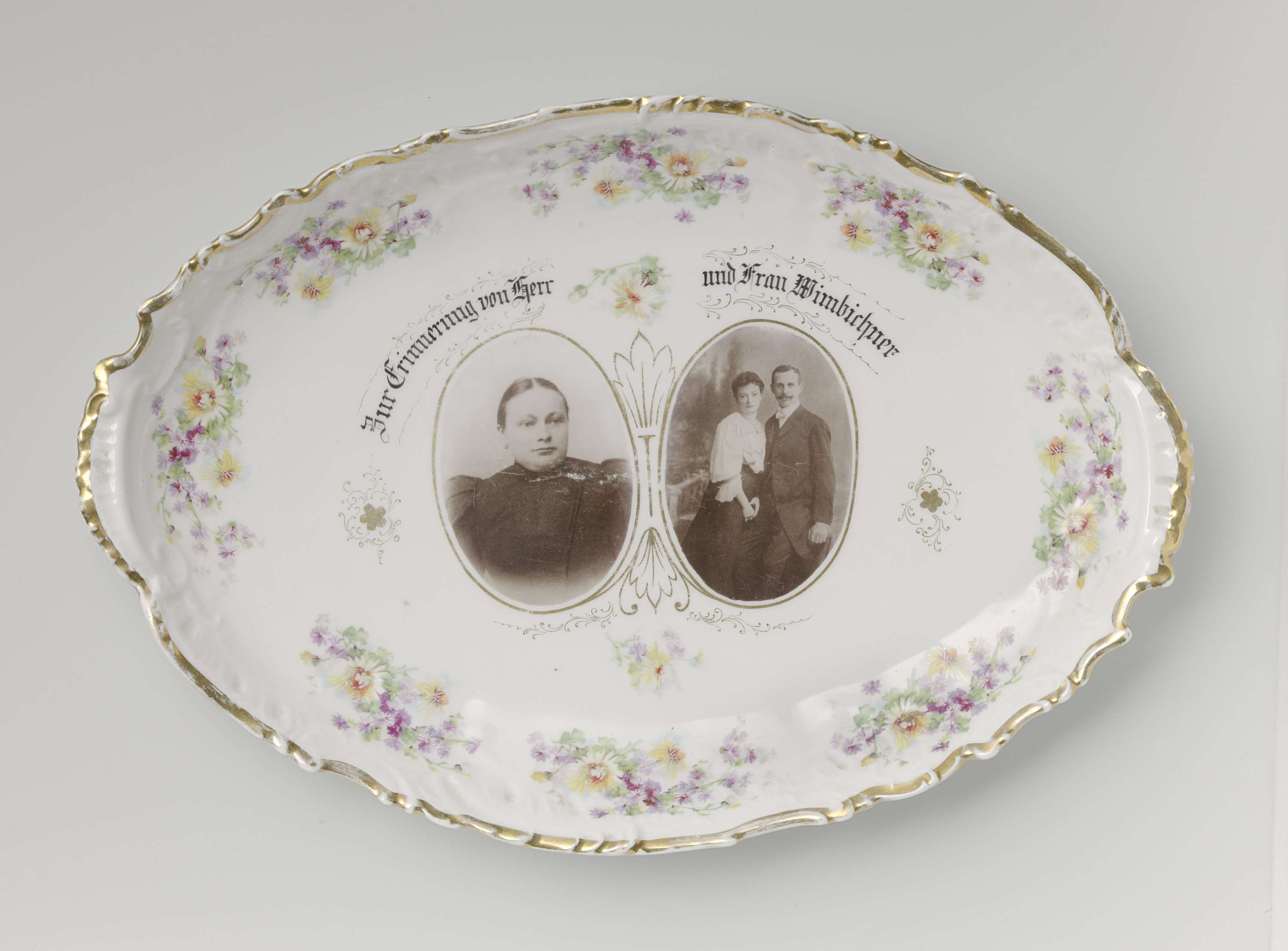 Schotel met twee portretten 'Zur Erinnerung von Herr...