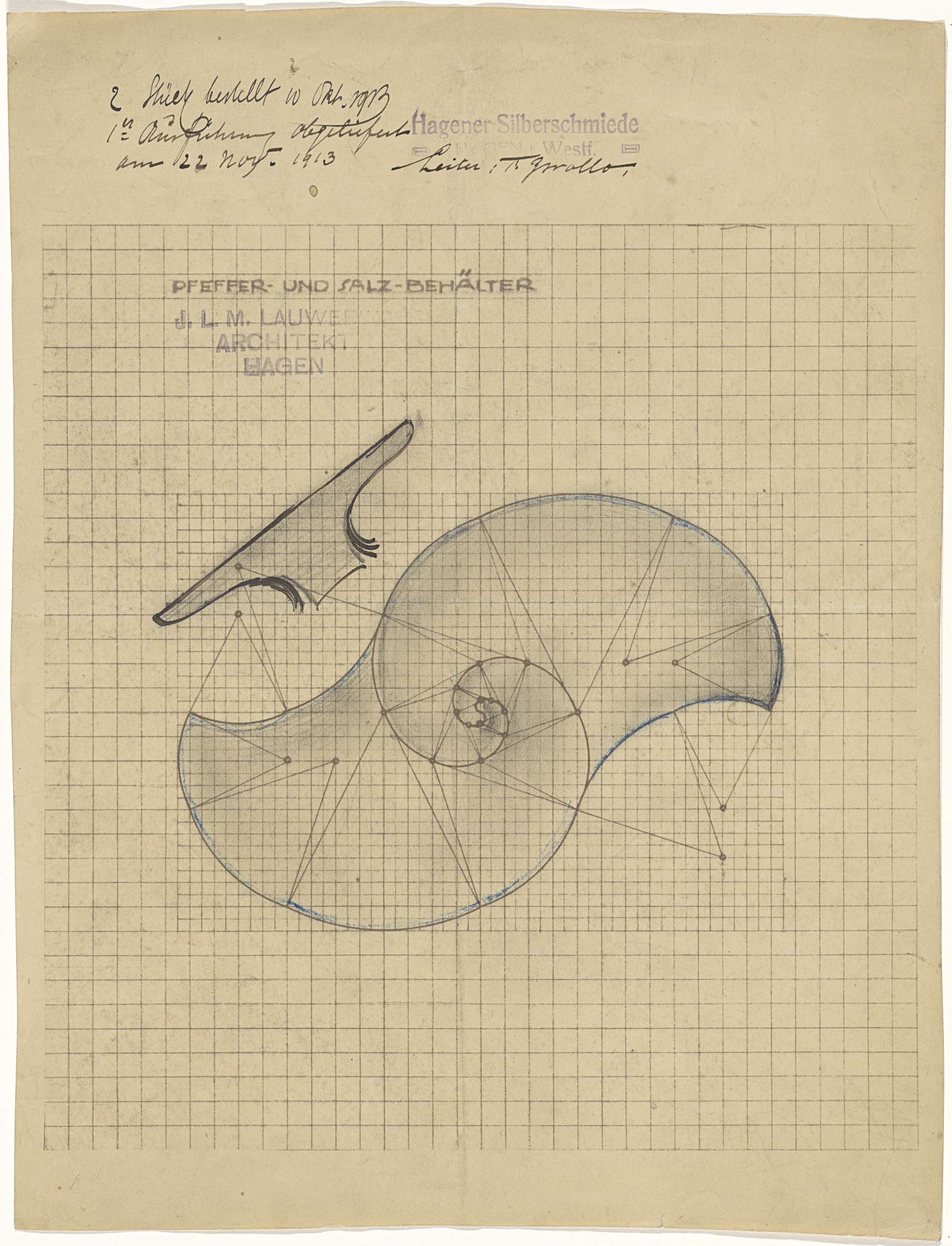 Ontwerp voor een zilveren tafelstuk in de vorm van e...
