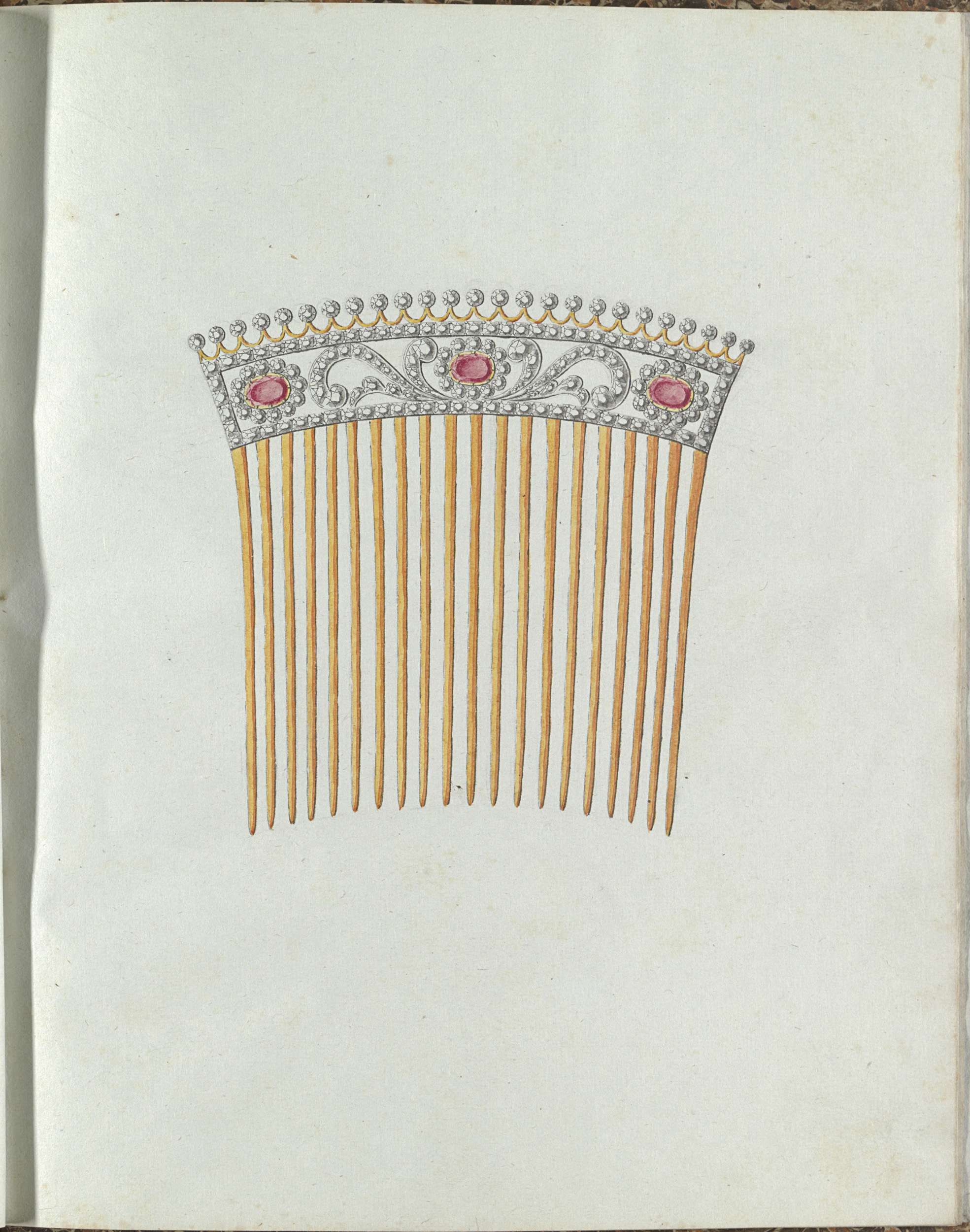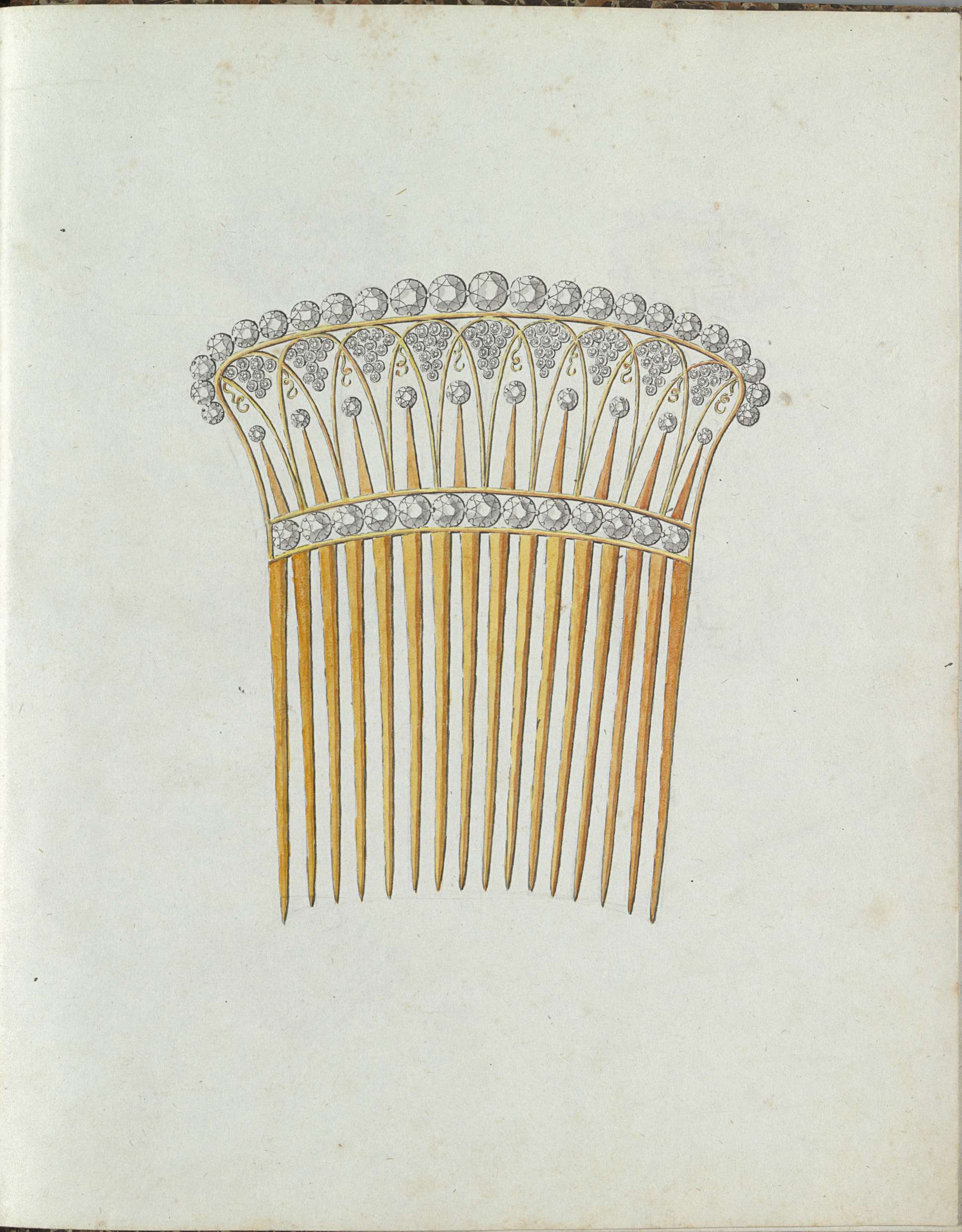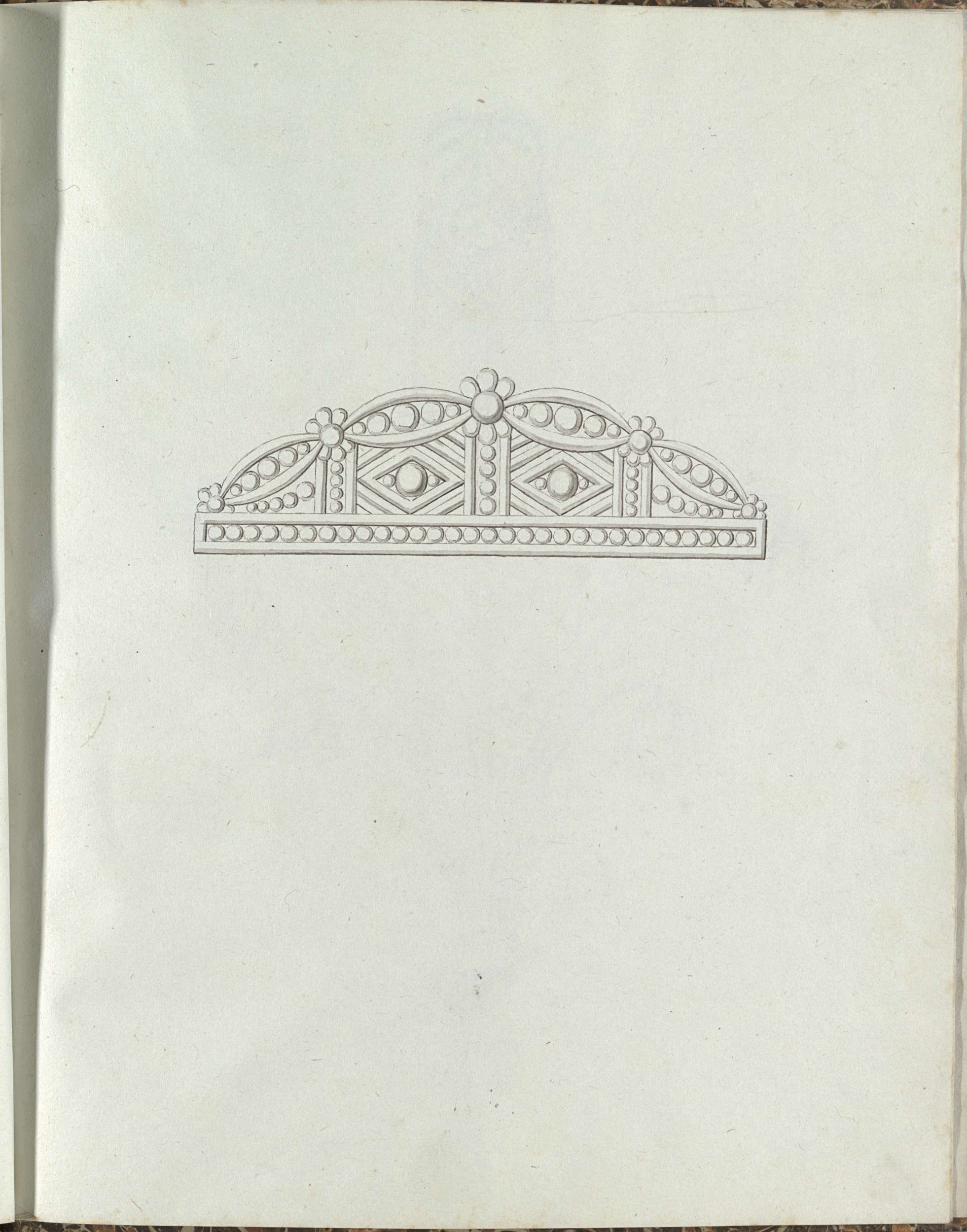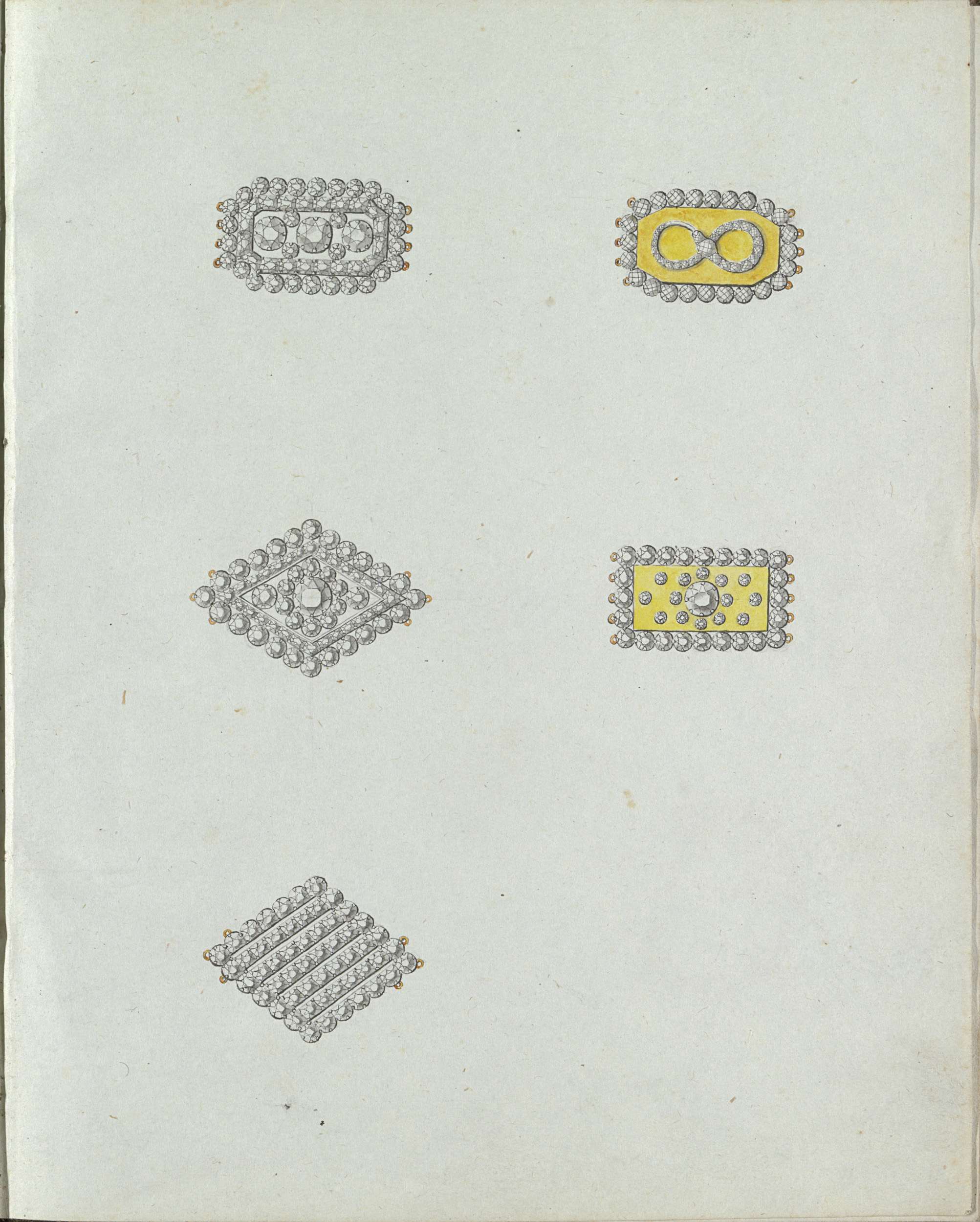 Vijf ontwerpen van oorbellen, waarvan één met een dr...