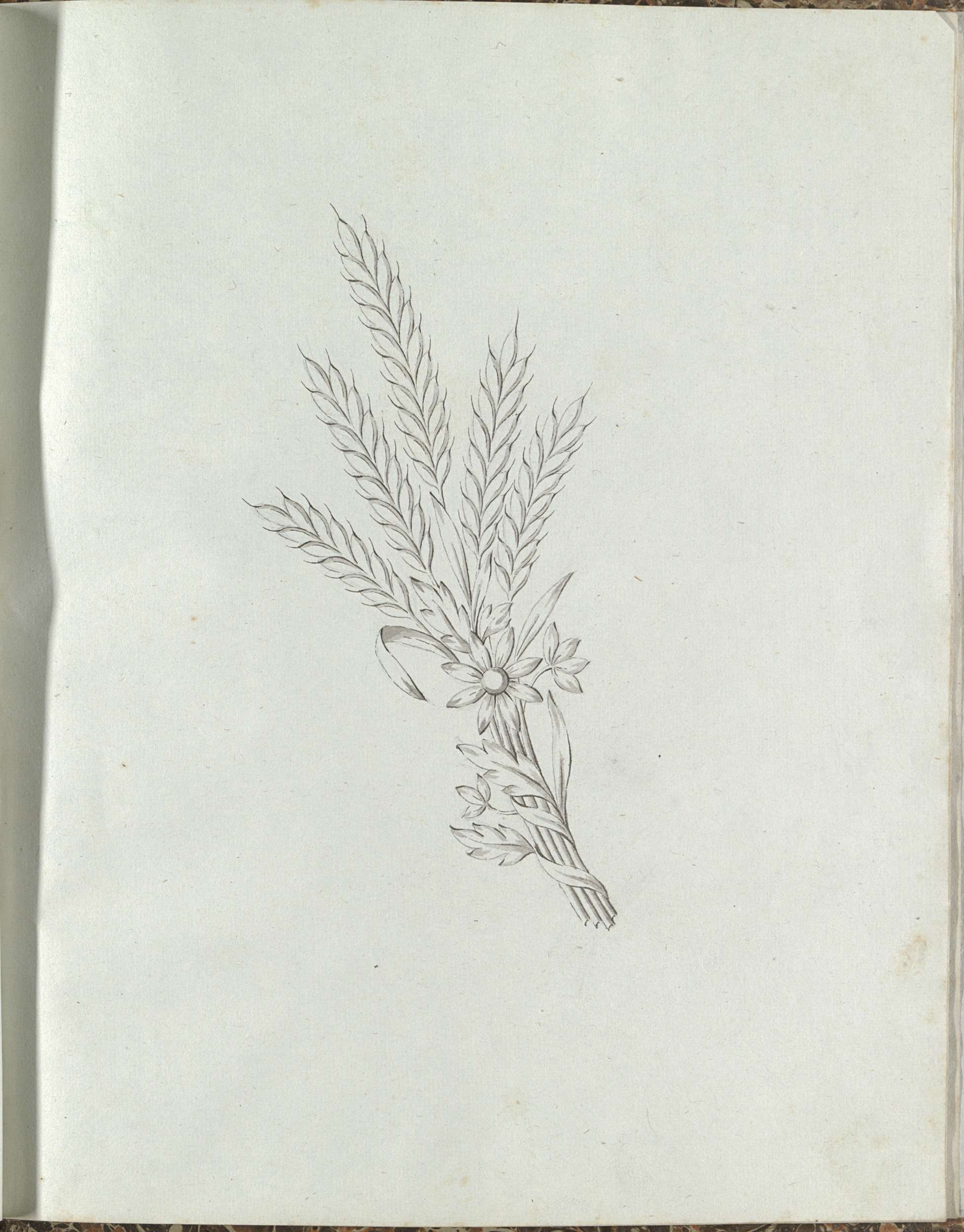 Studieblad met twee koppen met hoeden en ronde en dr...