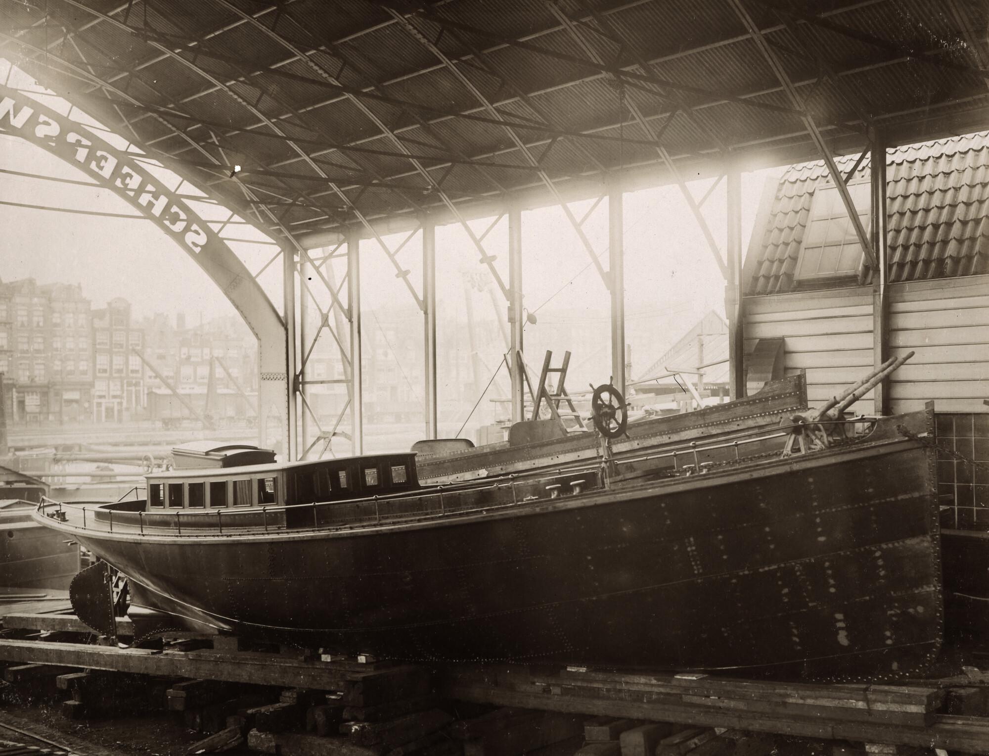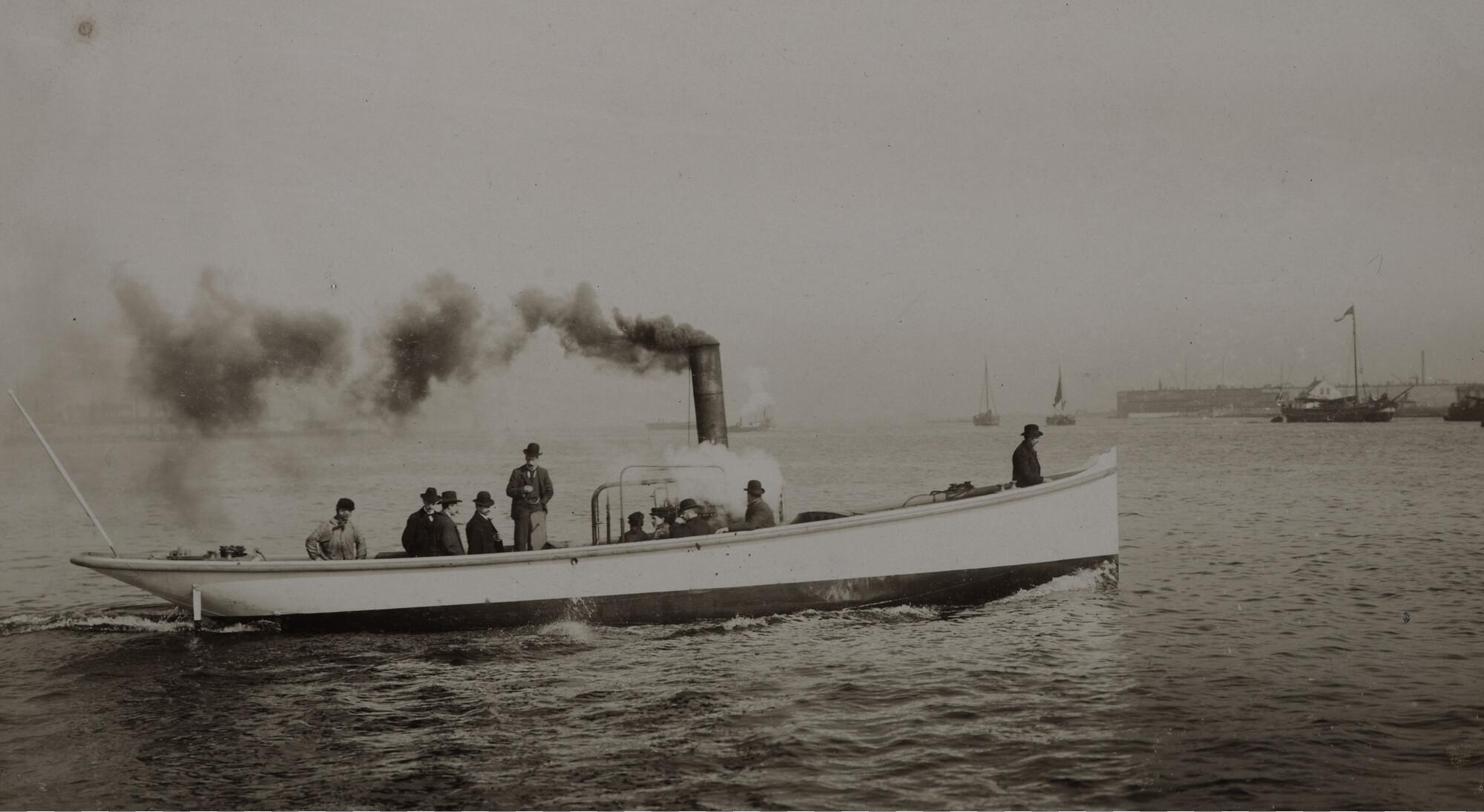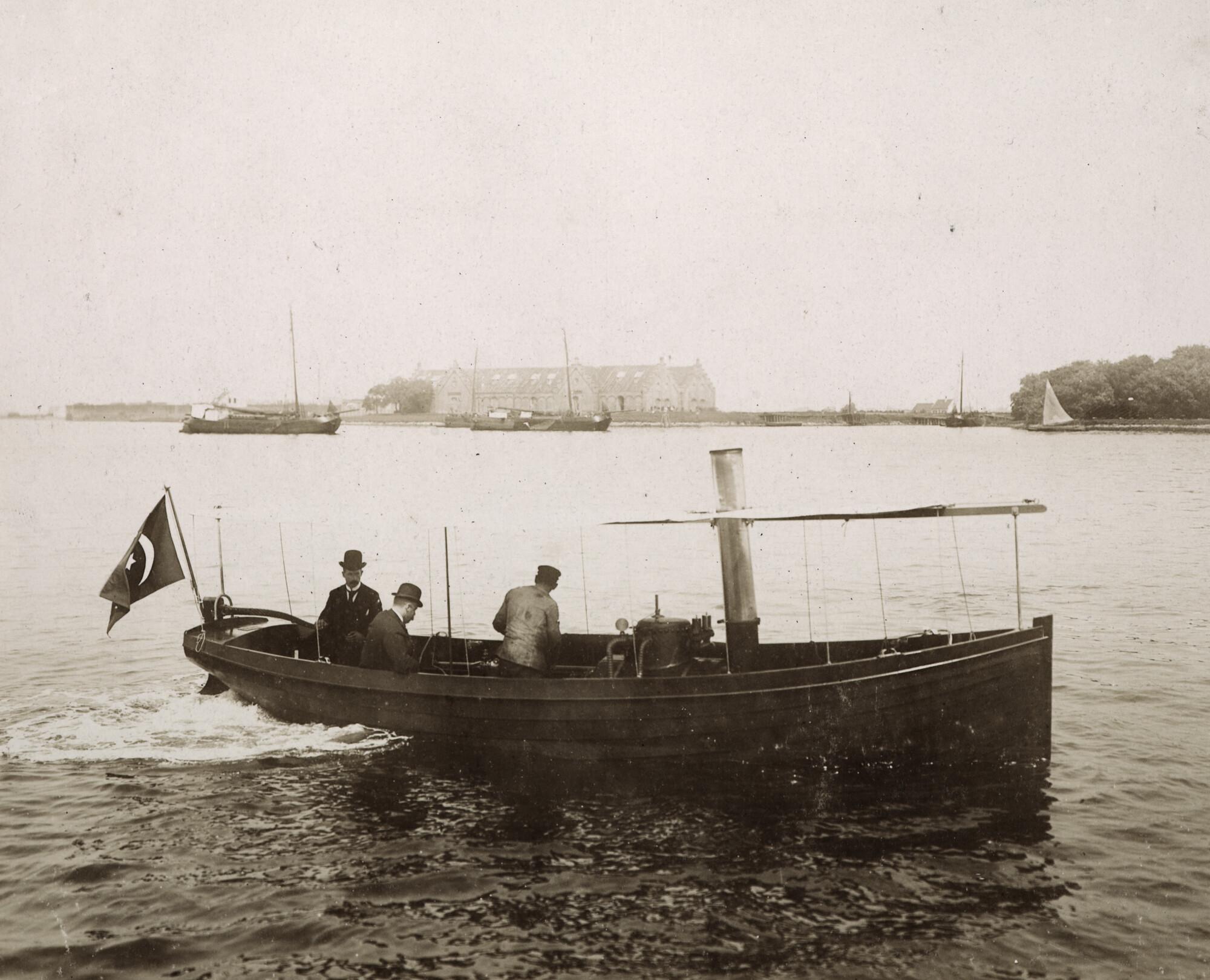 Stoomsloep van 8.50 meter op 't IJ bij het Petroleum...
