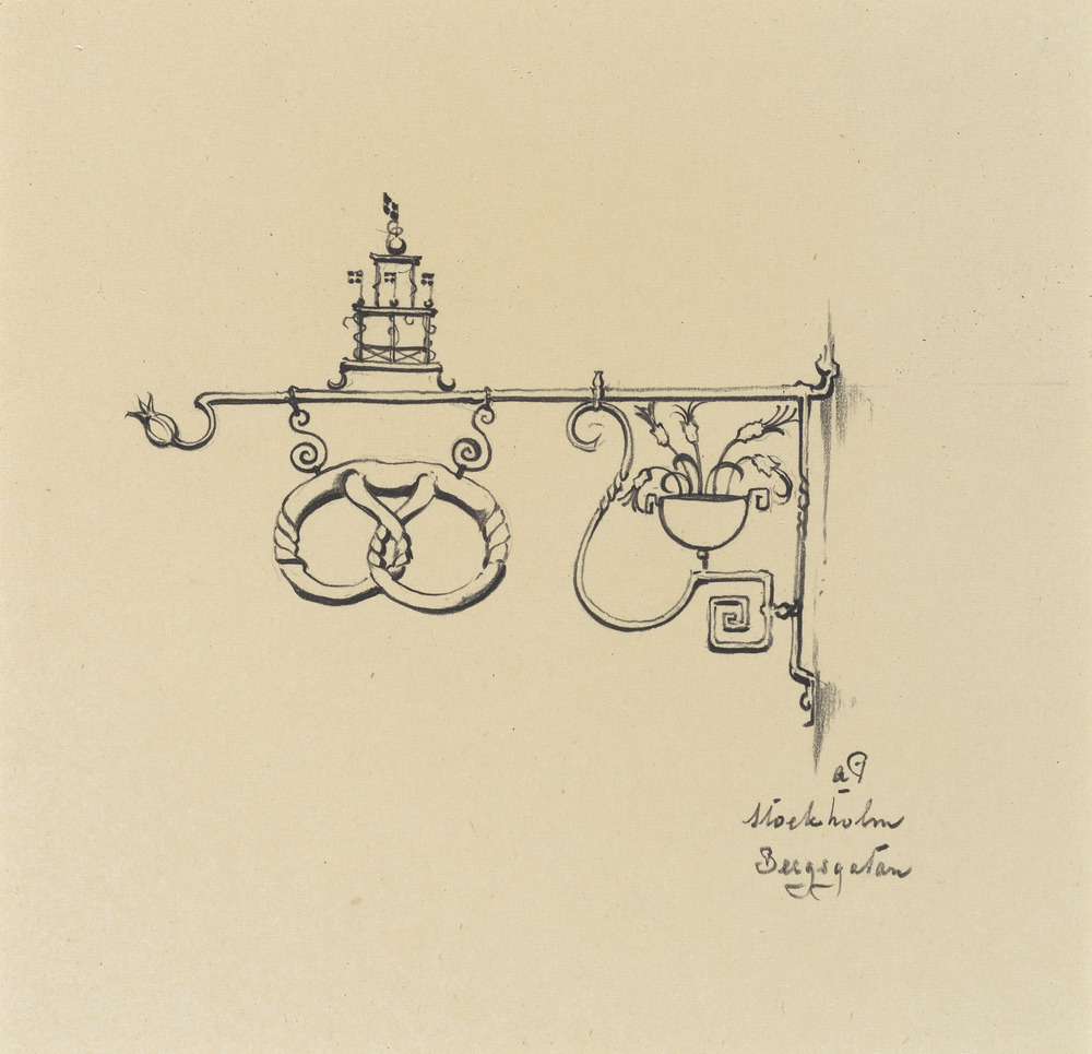 Uithangbord met krakeling te Stockholm, Zweden, reis...