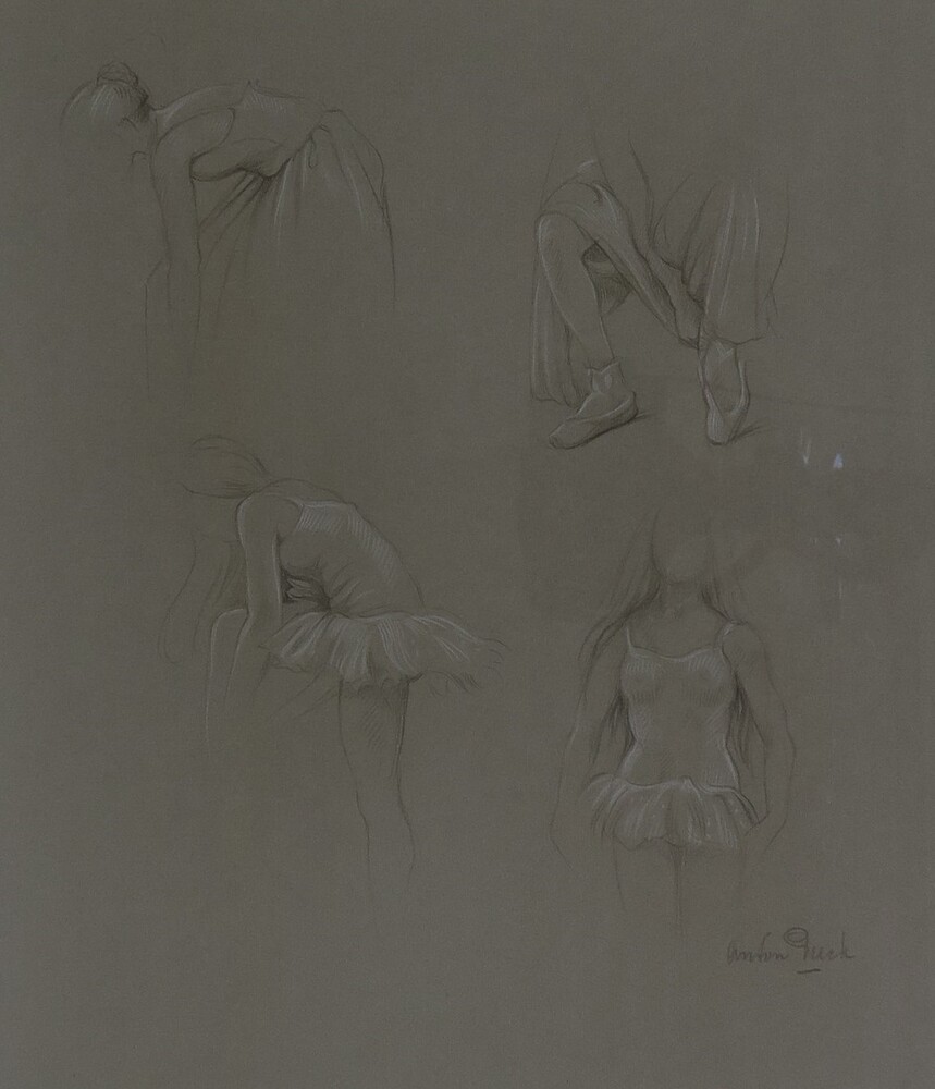 Blad met vier modelstudies van een ballerina