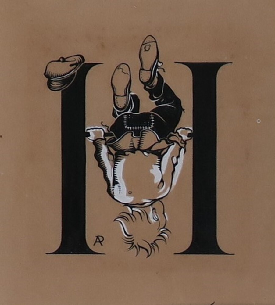 Dronken man hangend op een paal, voorstudie kalender...