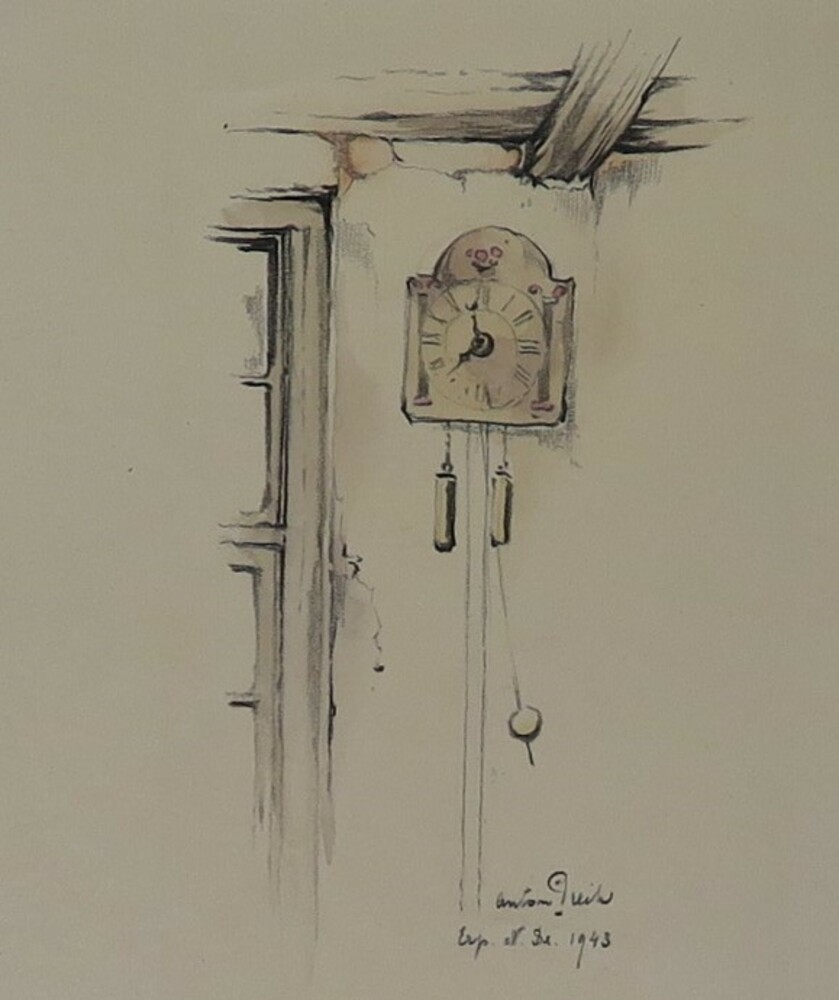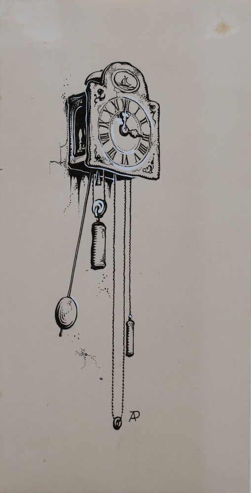 Ingekleurde tekening van een klok te Erp, Noord Brab...