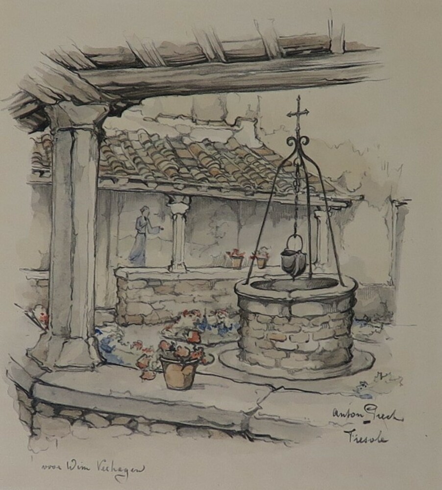 Putje op binnenplaats in Fiesole, reistekening Italië