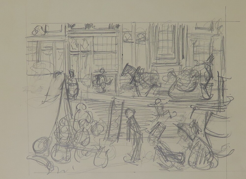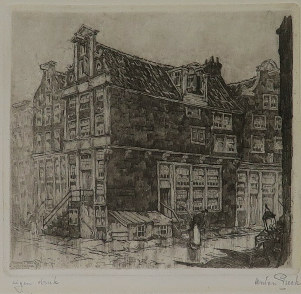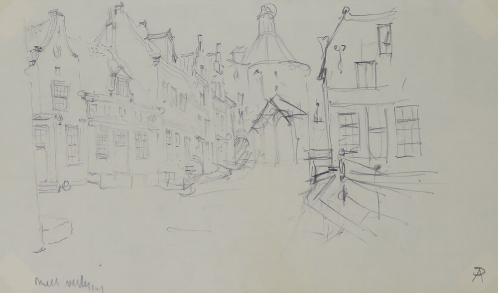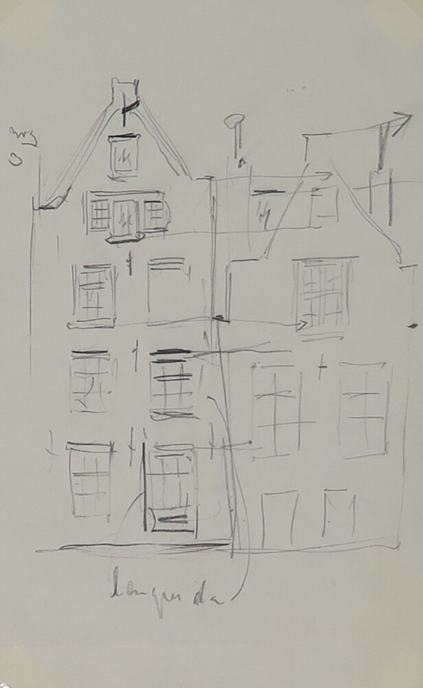 Twee huizen, voorstudie kalenderplaat Amsterdam, Spu...