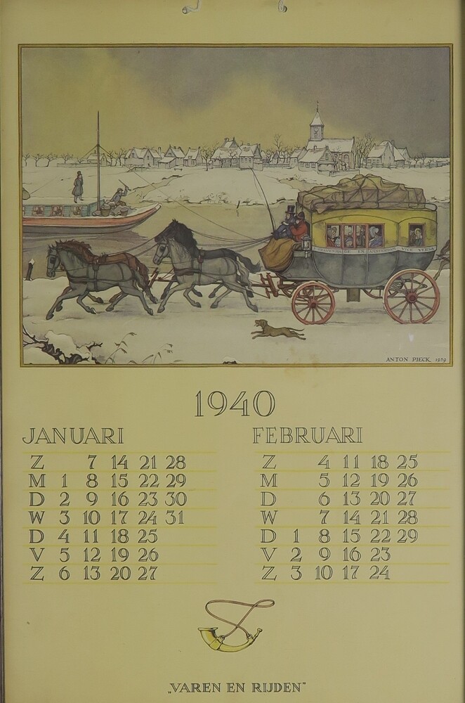 Kalender 1940 Januari en Februari met kalenderplaat ...