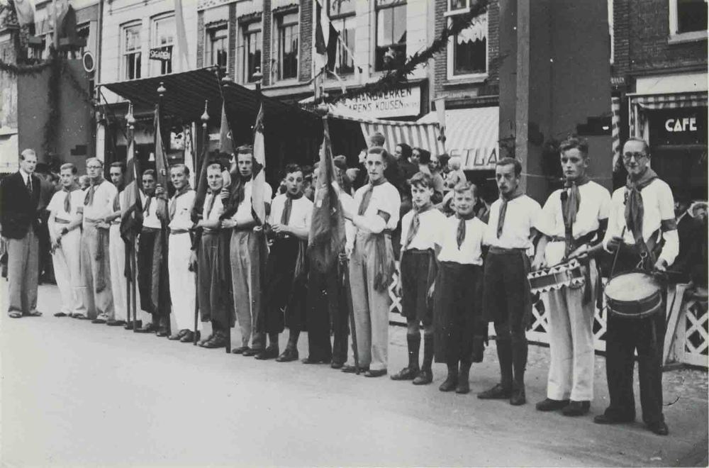 Foto, voorstellende oranjefeest op de Markt te Culem...