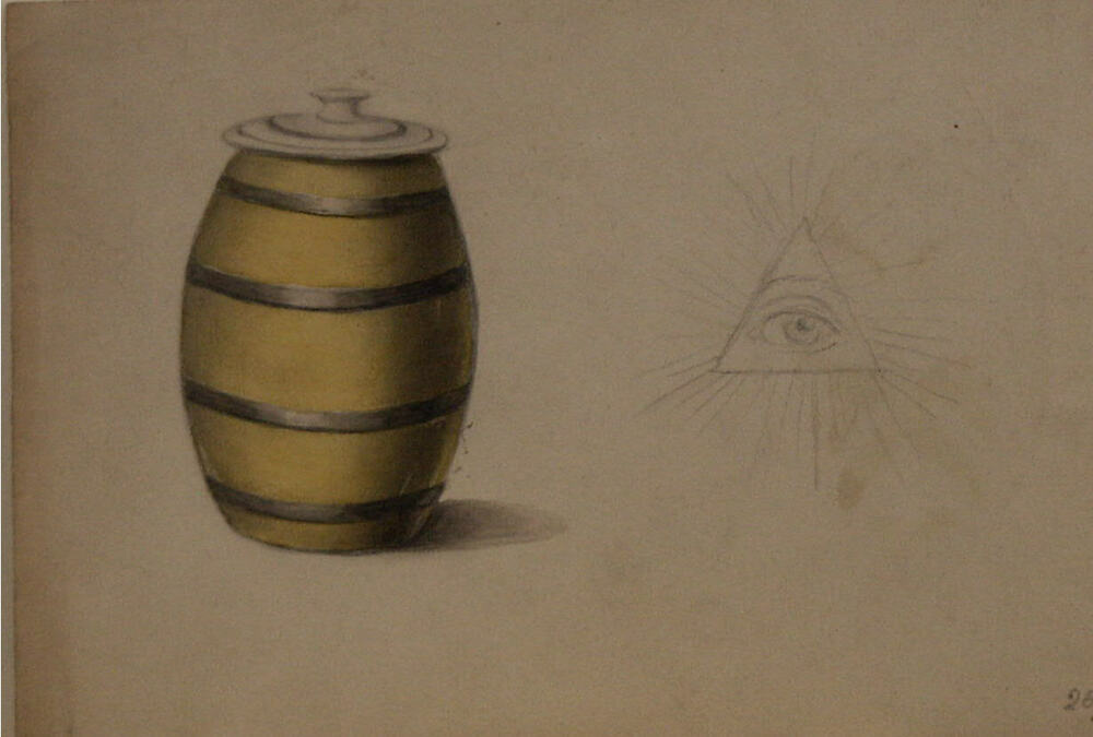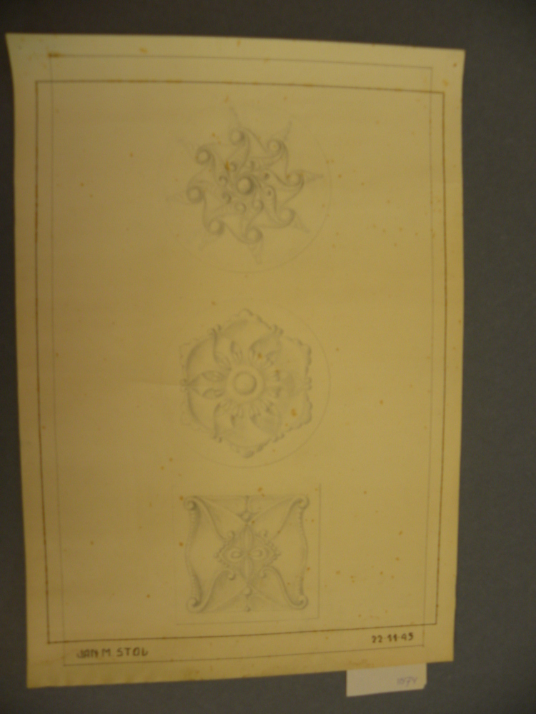 Tekeningen op papier voorstellende ontwerpen door Ja...