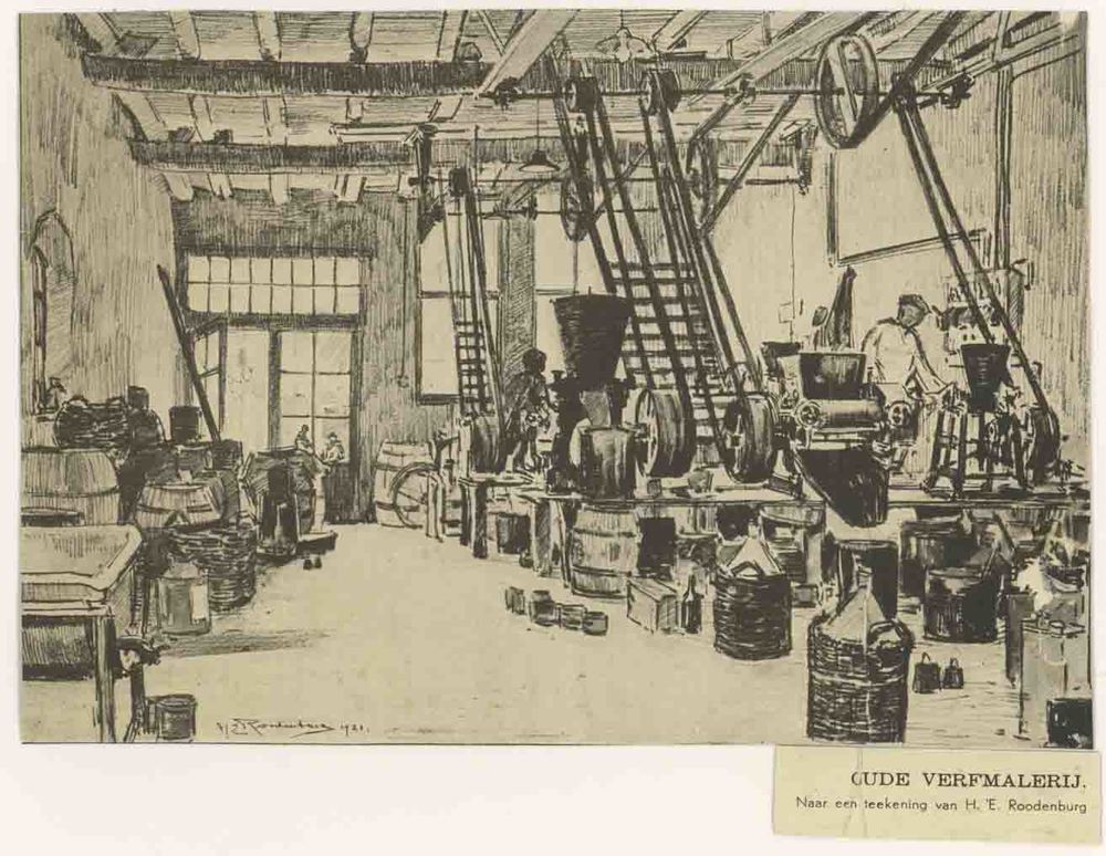 Foto, voorstellende de stoomverffabriek Batouwe aan ...