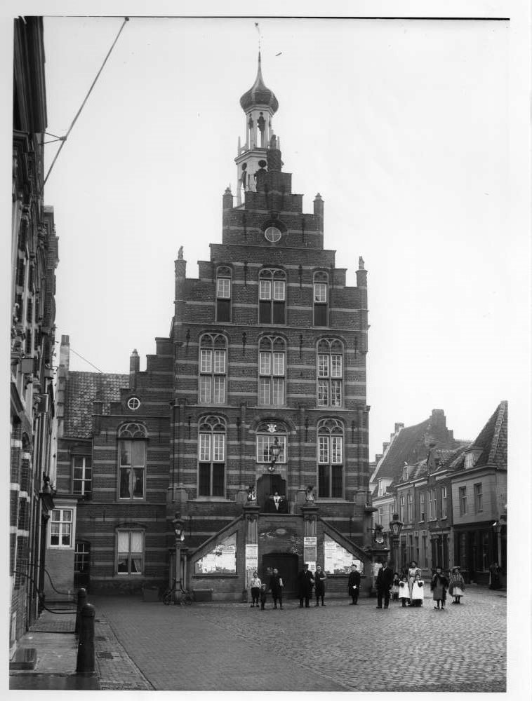 Foto, voorstellende de Markt met stadhuis te Culembo...