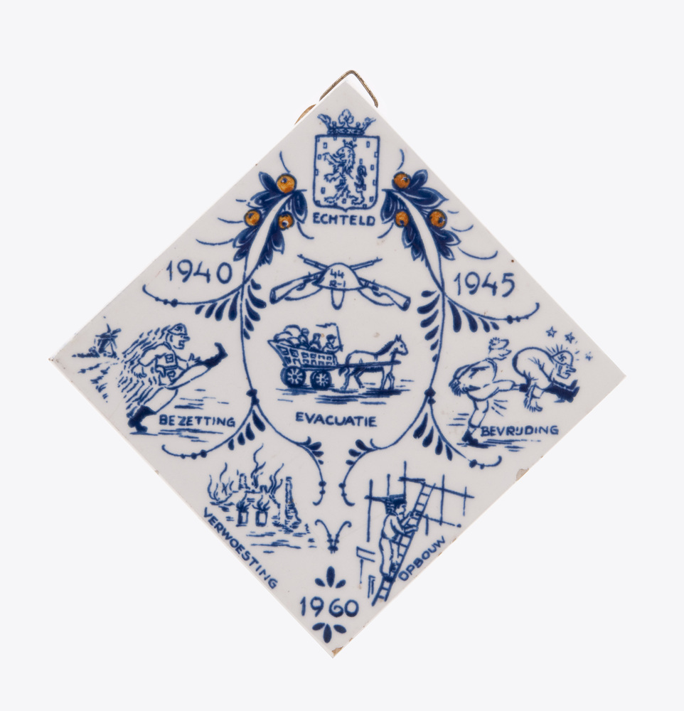 Tegel van geglazuurd aardewerk met beelden van het d...