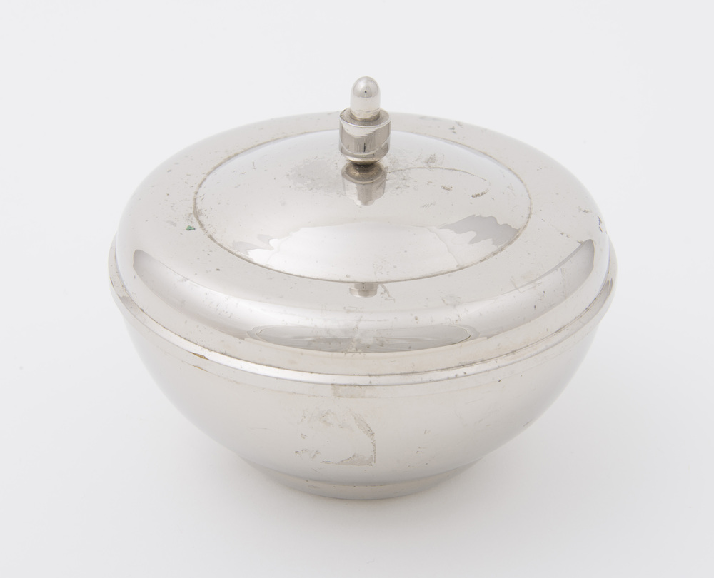 Theebus van vernikkeld metaal, vervaardigd door Meta...