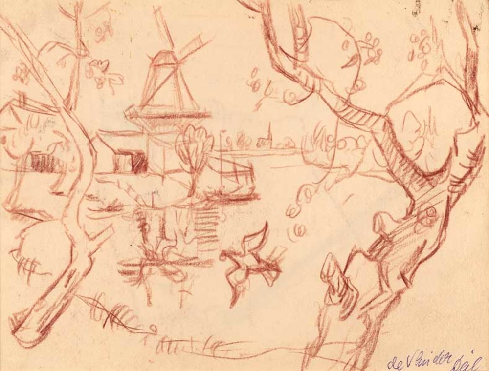 Tekening, voorstellende molen "de Vlinder" aan de Li...