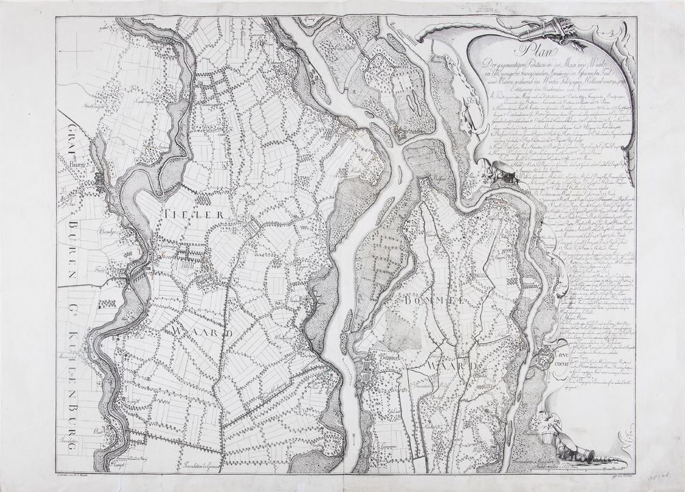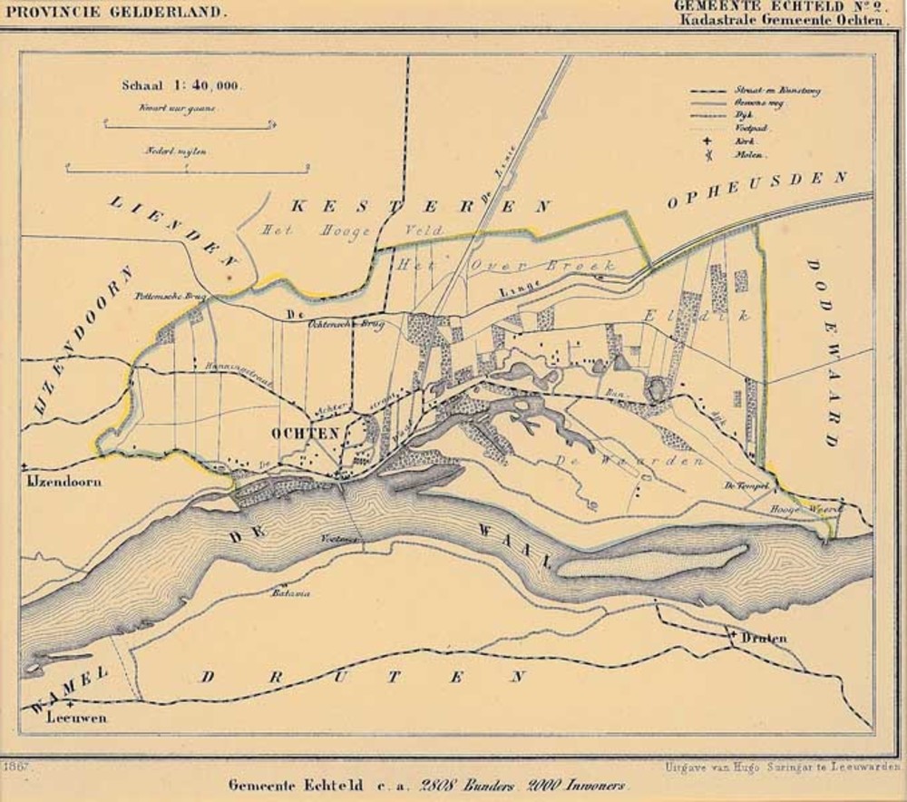 Reproductie, voorstellende kaart van de Neder-Betuwe...