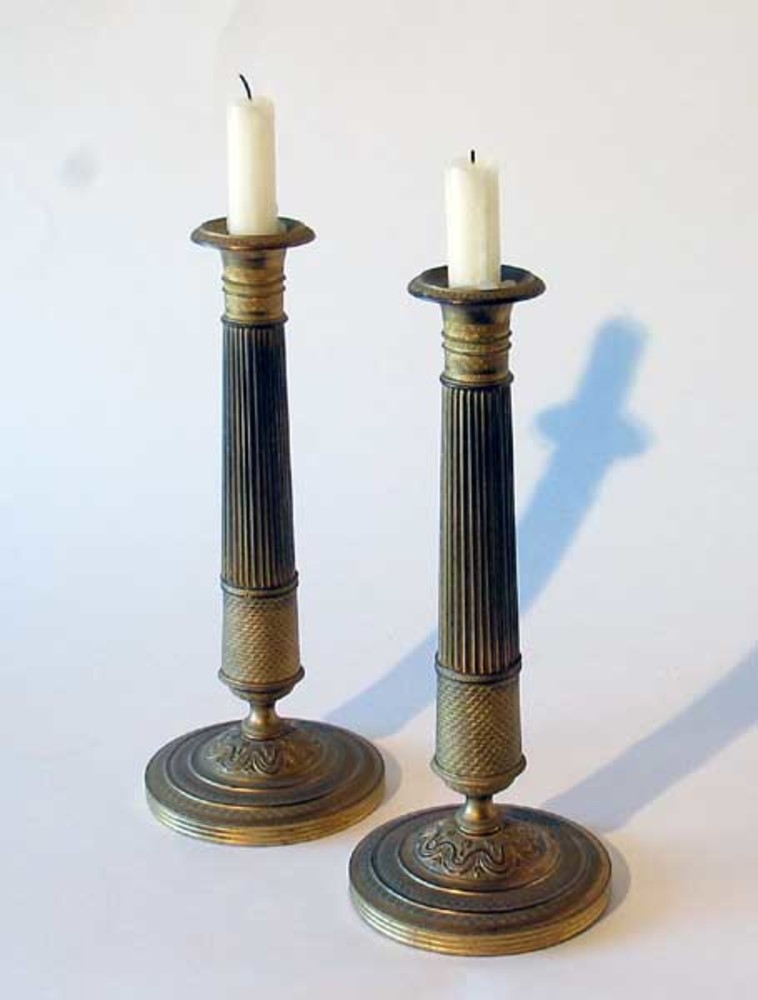 Kandelaar van geel koper, vuur verguld, 2 stuks, Emp...