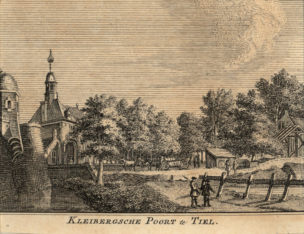 Houtgravure, voorstellende de Waterpoort te Tiel van...
