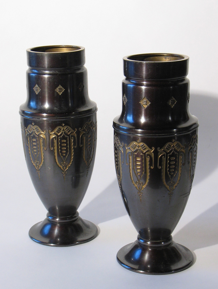 Vaas van messing, gebruineerd, z.g. Niello, vervaard...
