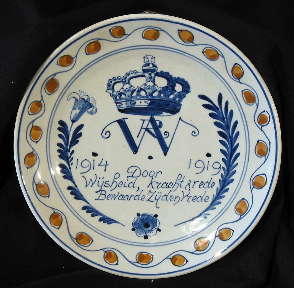 Gedenkbord van aardewerk, vervaardigd door de Porcel...