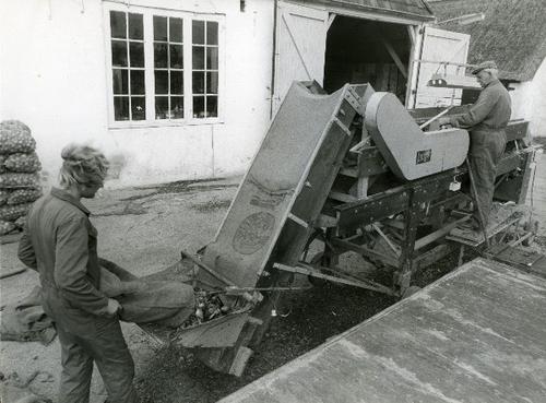 Foto in zwart-wit van een Langco sorteermachine door...