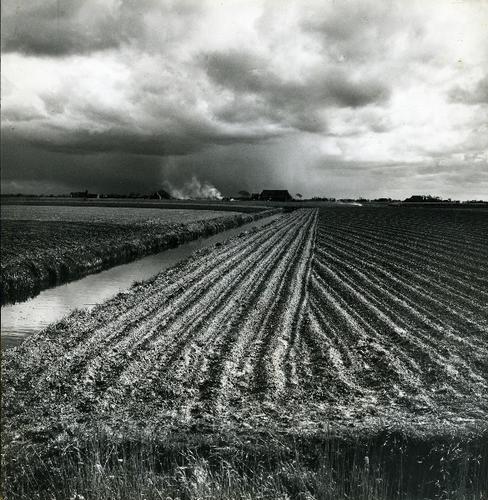 Foto in zwart-wit van akkers in de Bjirmen door J.D....