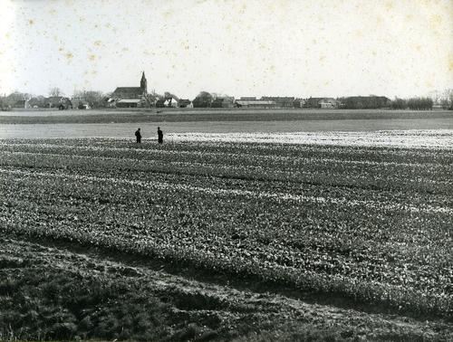 Foto in zwart-wit van tulpenvelden door J.D. de Jong...