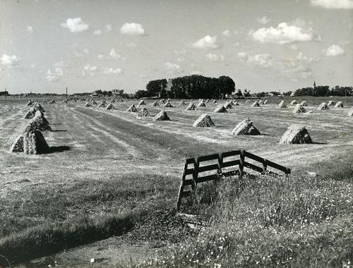 Foto in zwart-wit van hooibulten door J.D. de Jong, ...