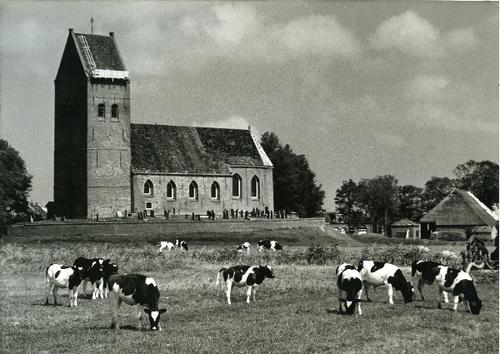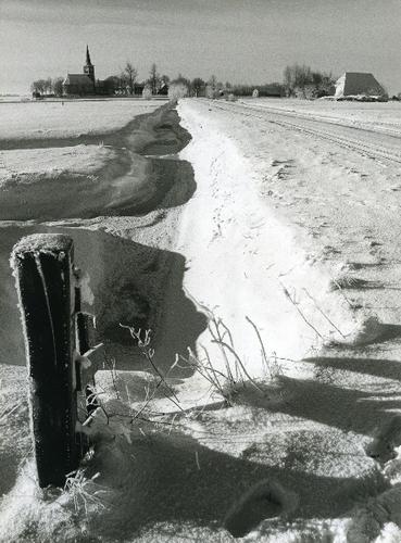 Foto in zwart-wit van de kerk van Westhem door J.D. ...