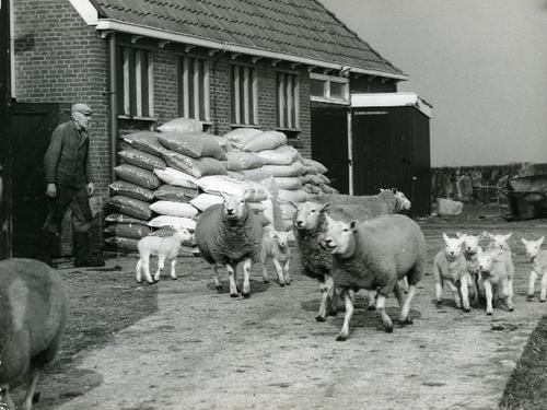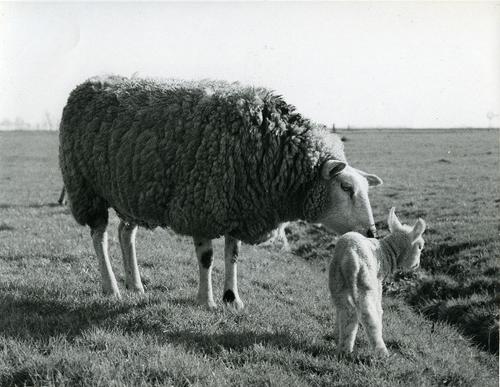 Foto van een schaap met een lam door J.D. de Jong, 1960