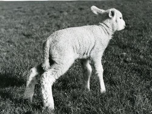 Foto in zwart-wit van een lam in de wei door J.D. de...