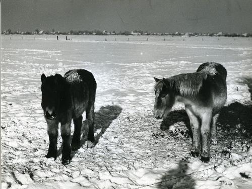 Foto in zwart-wit van pony's in de sneeuw door J.D. ...