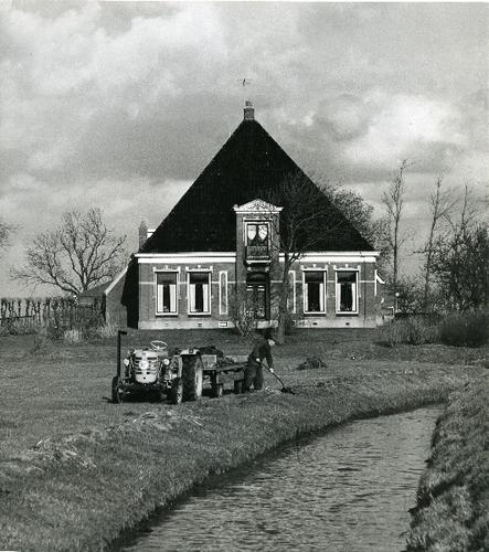 Foto in zwart-wit van een stelpboerderij te Oranjewo...