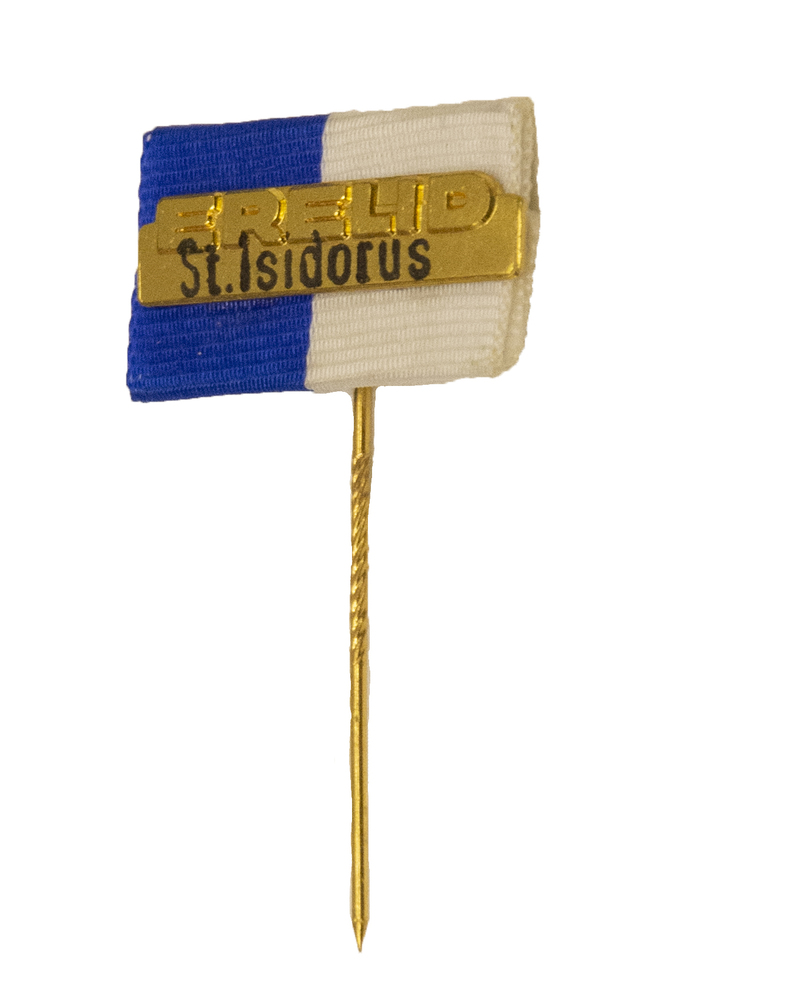 Speld van metaal met de tekst 'erelid Sint Isidorus'