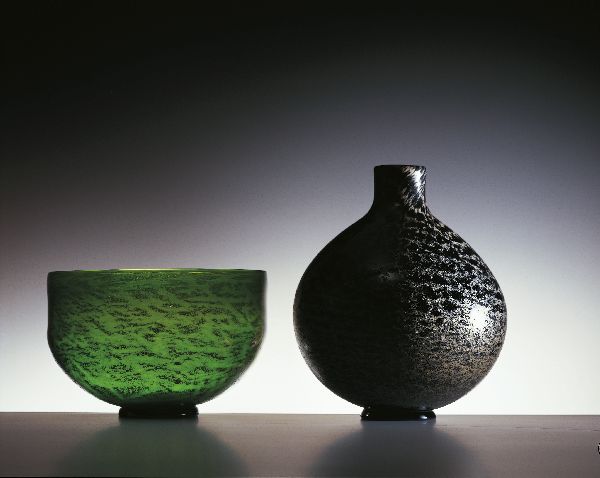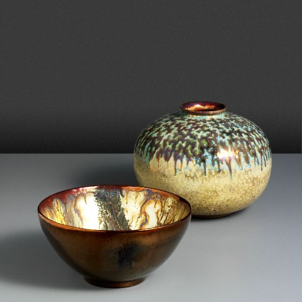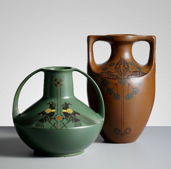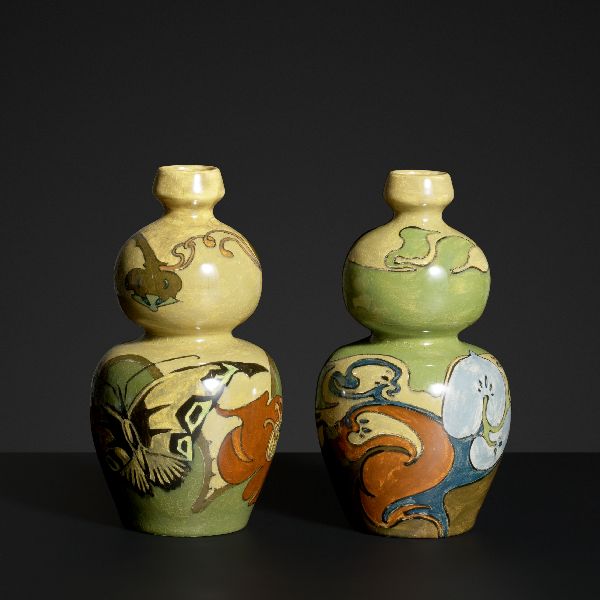Drietal vazen, de linker met decor Lura, de rechter ...