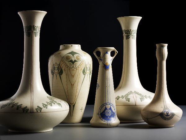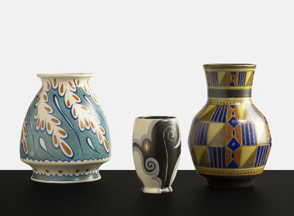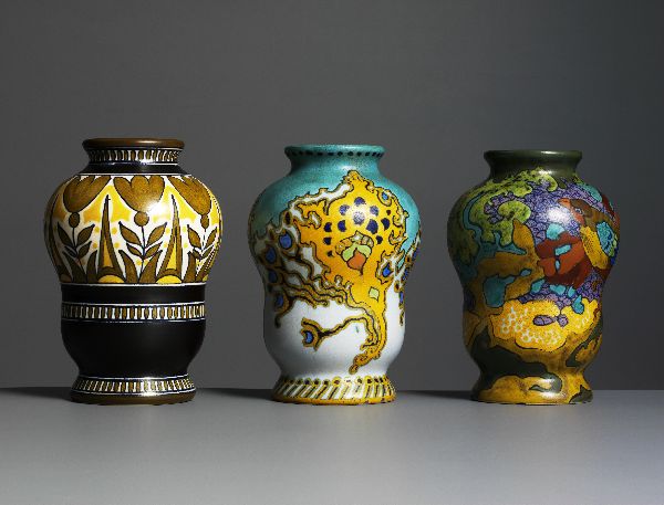 Drietal vazen met decors Gustin, Bejo en Moorish